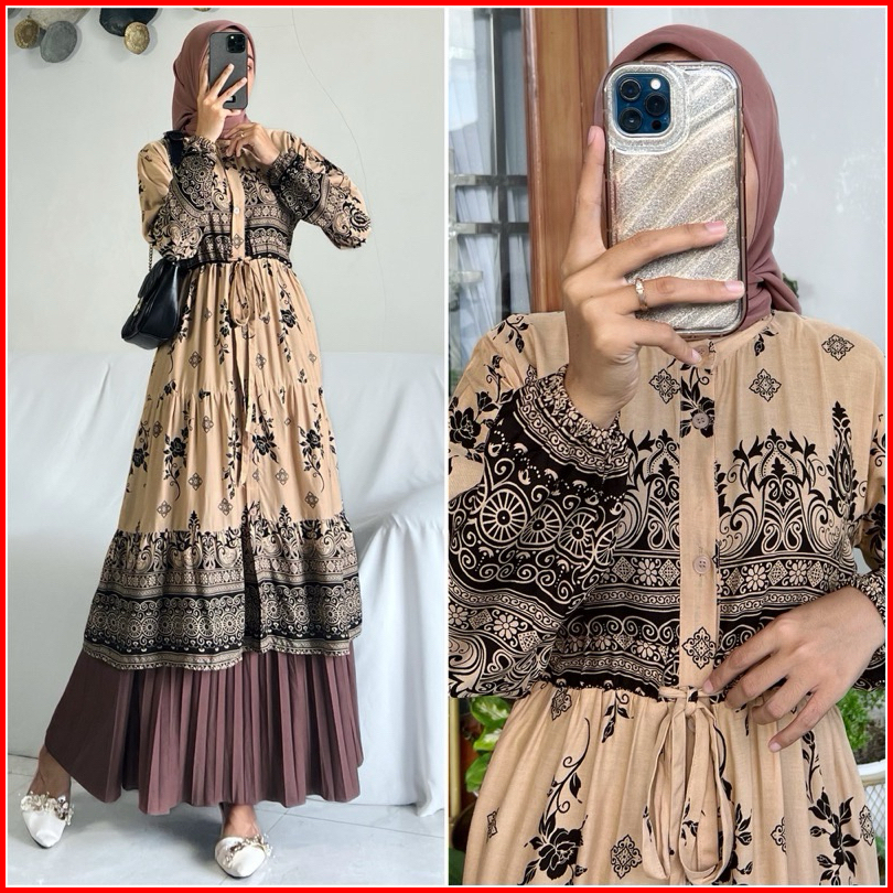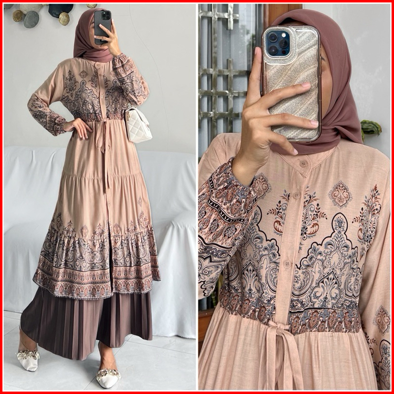 Clara Tunik Part-2 By Zalfa Outfit Baju Atasan Wanita Muslim Tunik Rayon Motif Polos Premium Lengan Karet