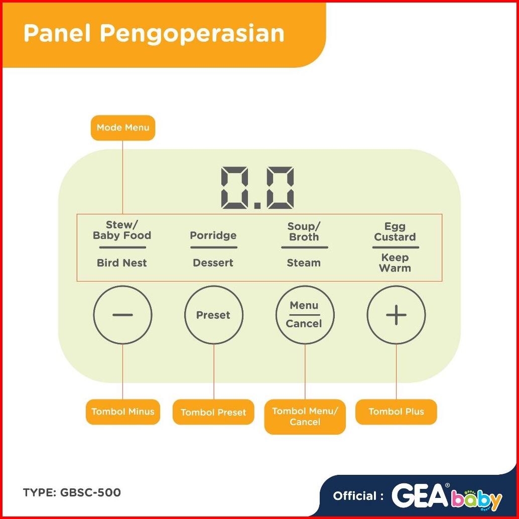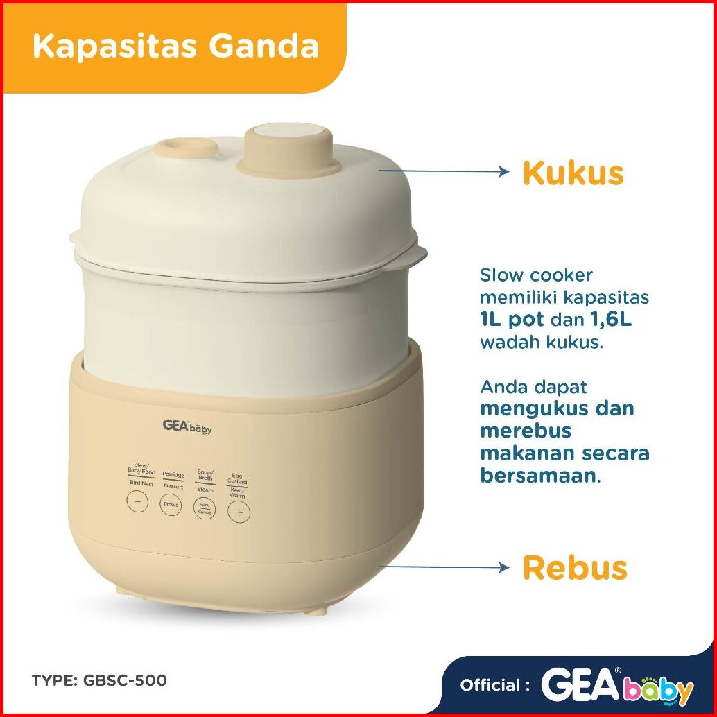 Gea Baby Gbsc-500 Digital Slow Cooker 1liter Panci Alat Masak Mpasi Baby Food Maker Alat Masak