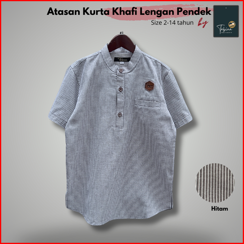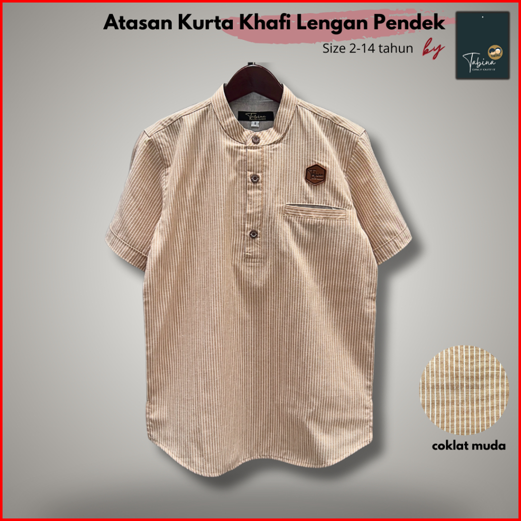Atasan Kemeja Kurta Salur Anak - Dewasa Laki Lengan Pendek Tabina Seri Khafi Usia 2 Tahun Hingga Xxl