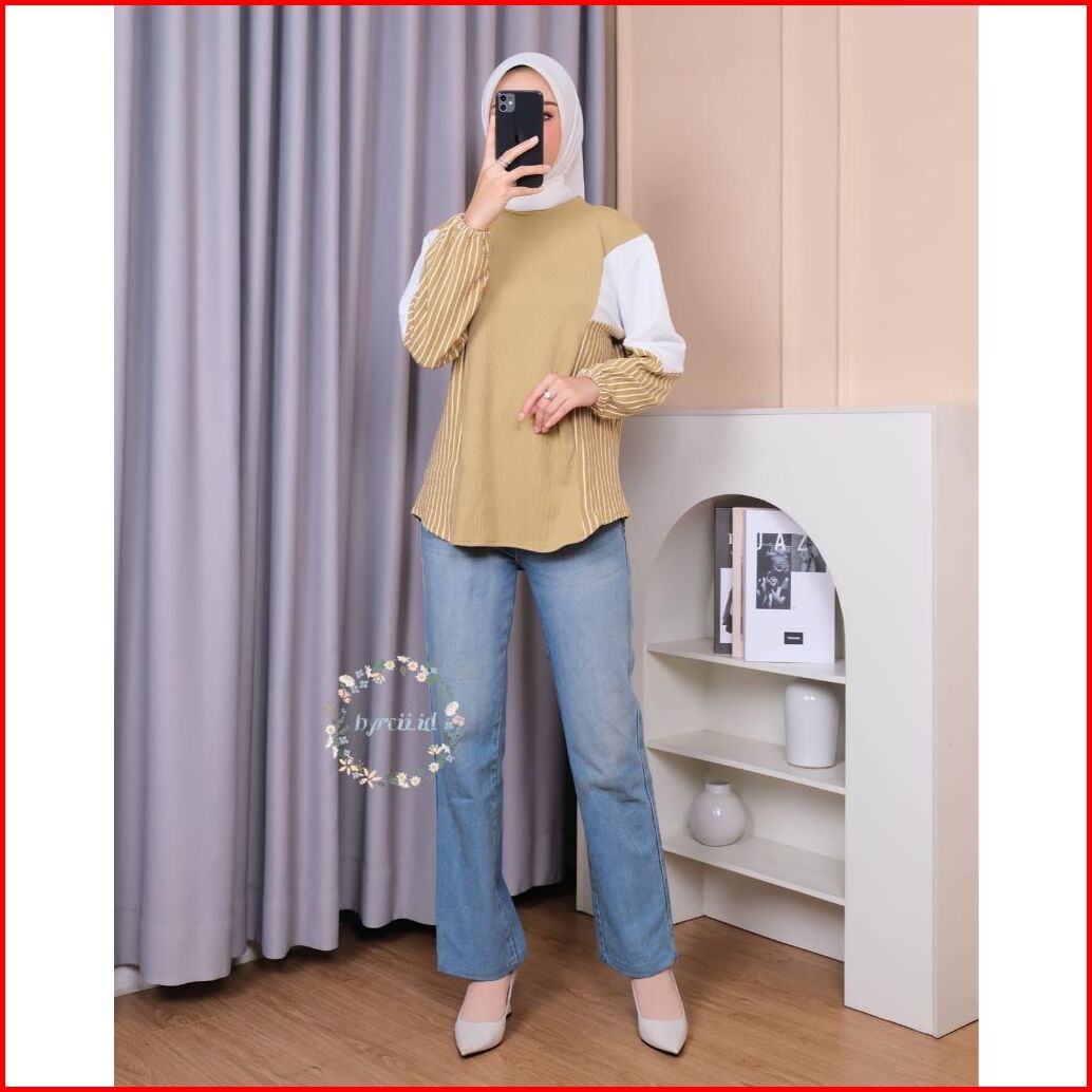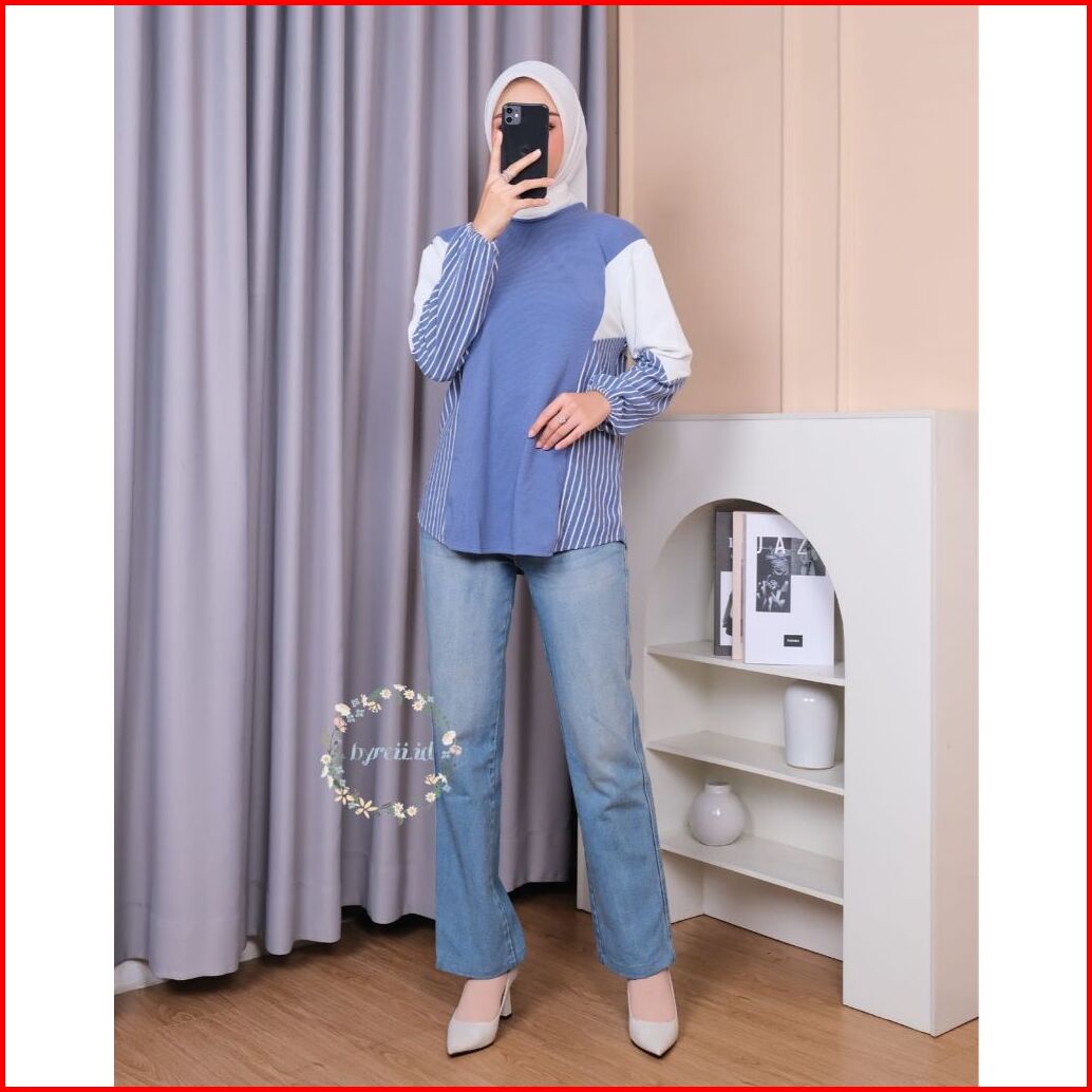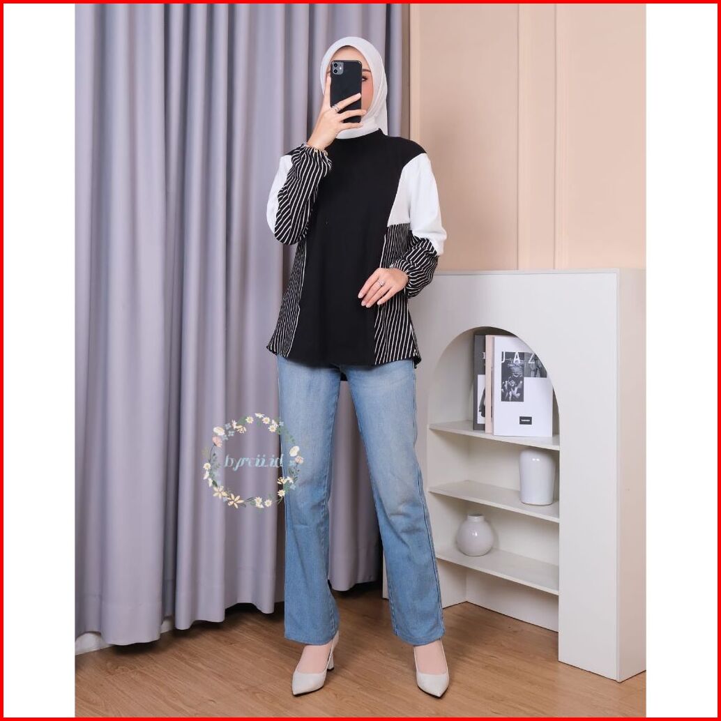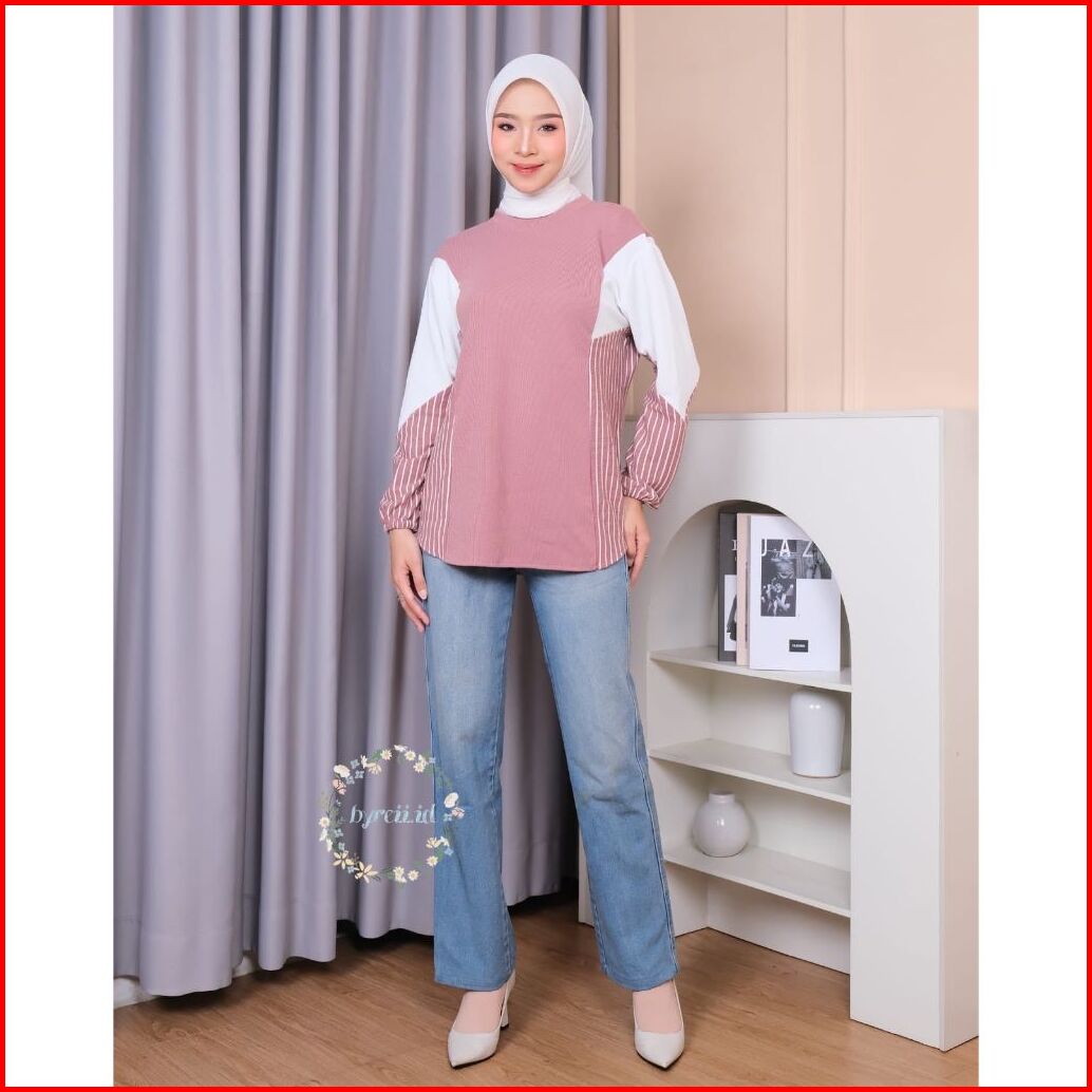 Blouse Una - Atasan Knit Kombinasi Salur - Atasan Blouse Wanita