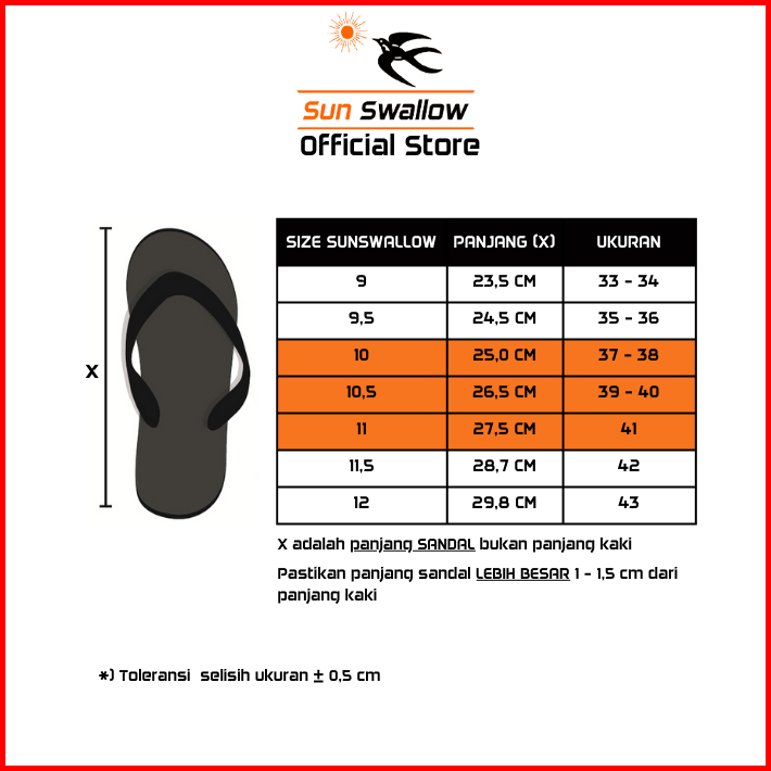 Sun Swallow Sandal Jepit Karet Pria Sendal Trek Motif Kulit Size Ukuran 37 38 39 40 41
