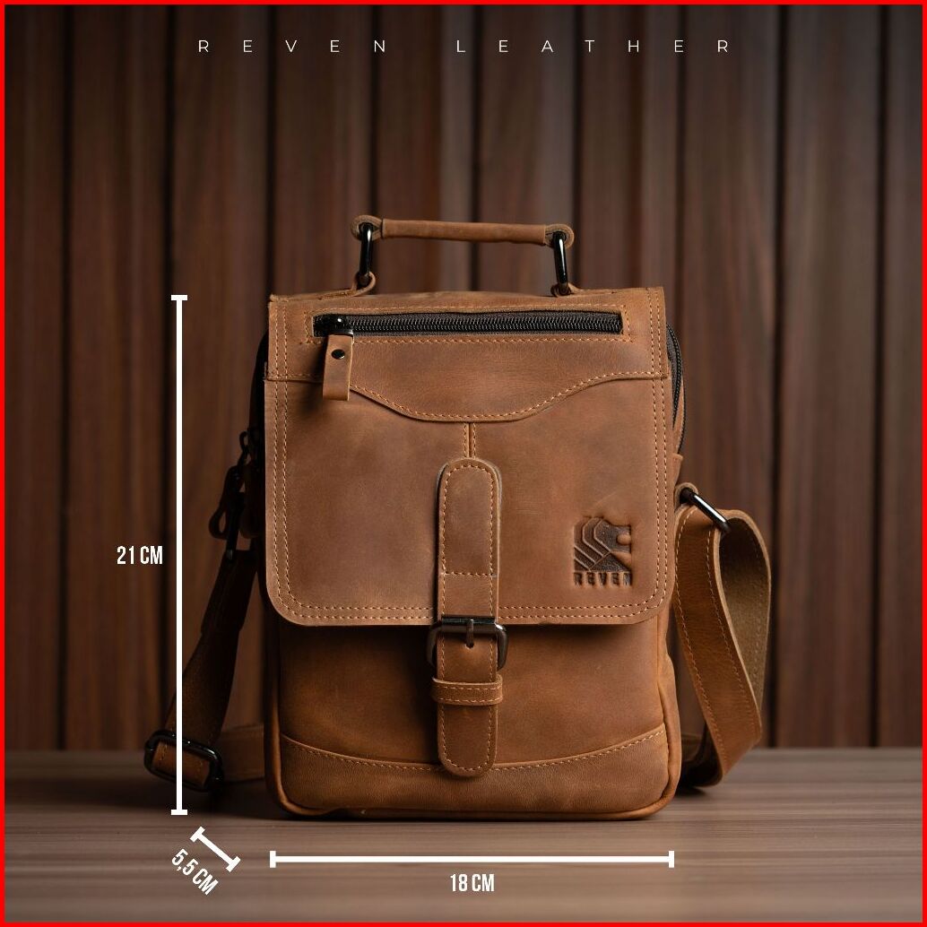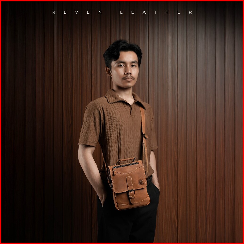 Reven Leather Steiner Bag - Tas Selempang Pria Kulit Sapi Asli Free Random Gift