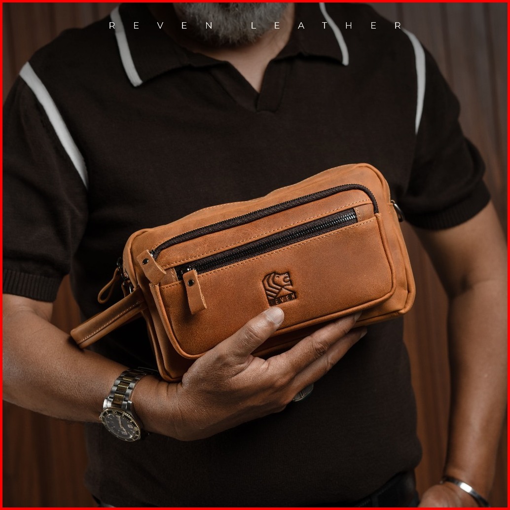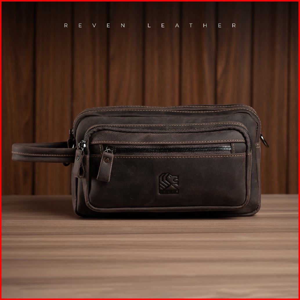 Reven Leather Nakula Pouch Bag - Tas Pria Miltifungsi Kulit Sapi Asli Free Random Gift