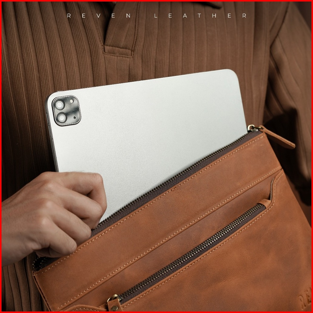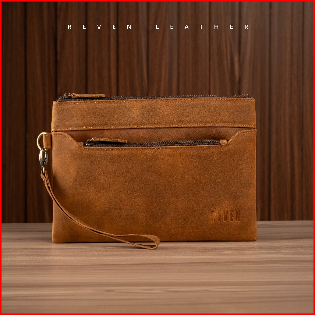 Reven Leather Darius Handbag - Tas Tangan Clutch Pria Kulit Sapi Asli Free Random Gift