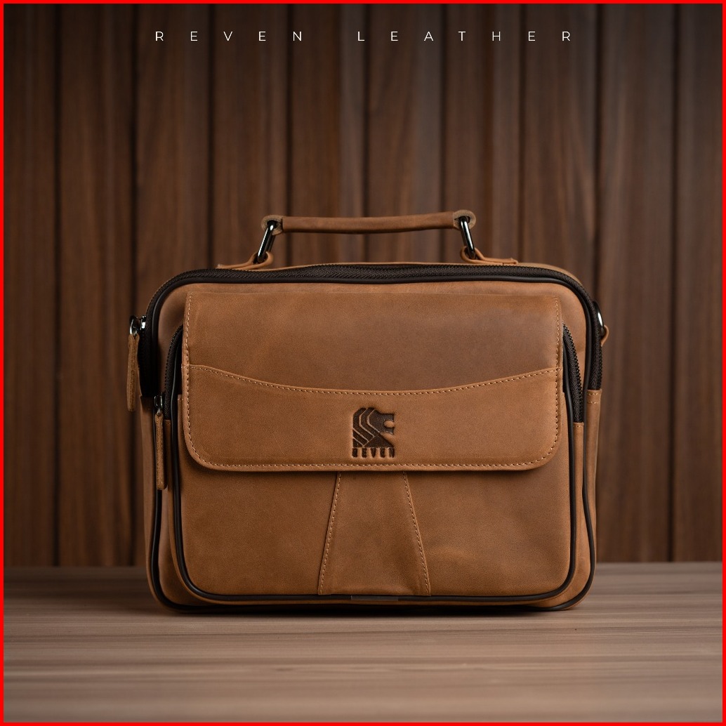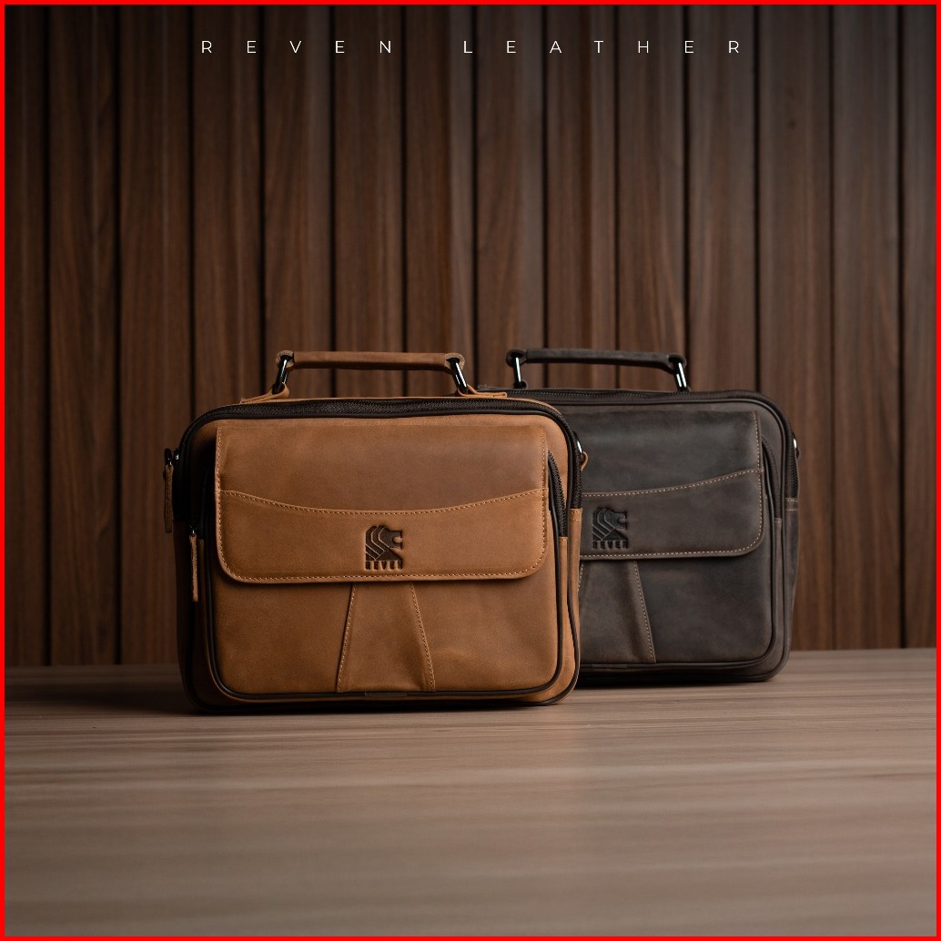 Reven Leather Bima Bag - Tas Selempang Jinjing Pria Kulit Sapi Asli Free Random Gift