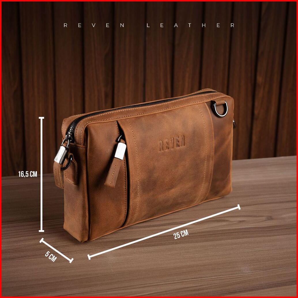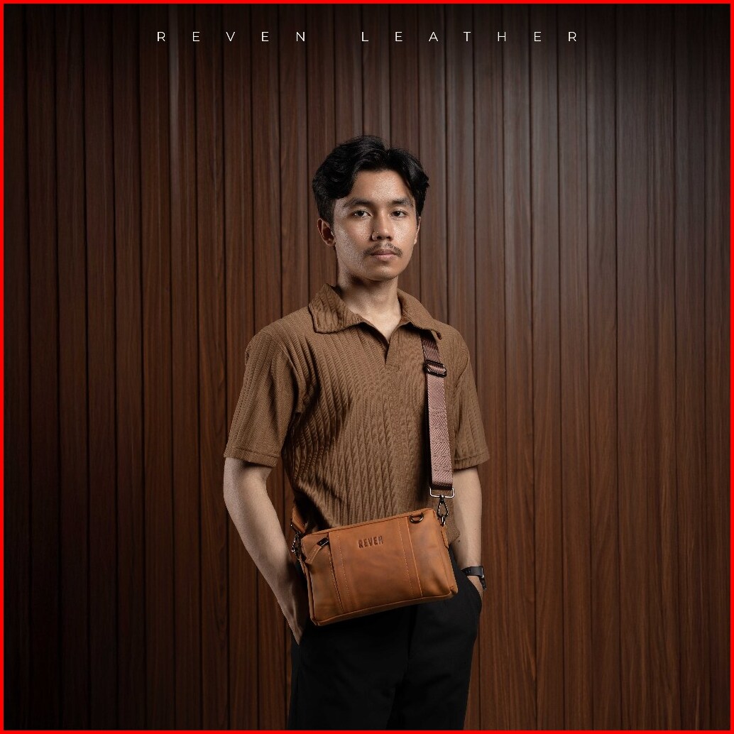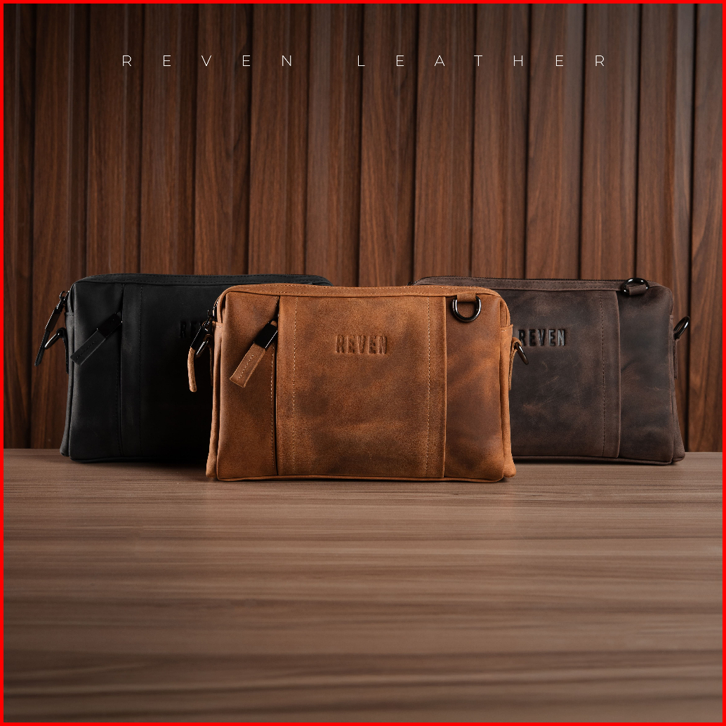 Reven Leather Oslo Slingbag - Tas Selempang Pria Kulit Sapi Asli Free Random Gift