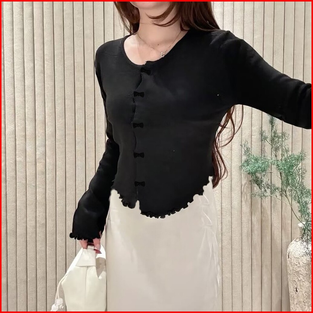 Vallina Outfit - Ribbonie Knit Premium Cardi Atasan Wanita Rajut 3d Aksesoris Pita Outerwear Cardigan Outer Wanita Remaj