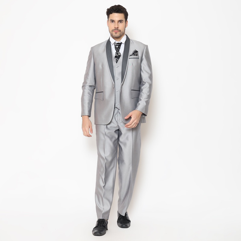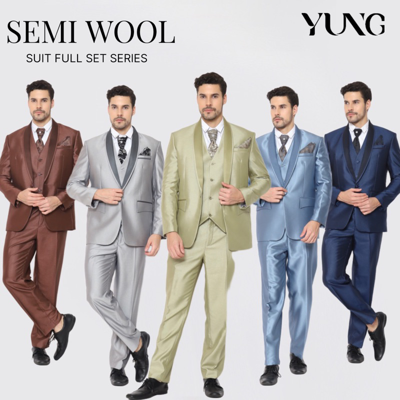 Full Set Jas Pria Pengantin Formal Setelan Semi Wool Full Jas + Rompi + Dasi & Cover - YUNG