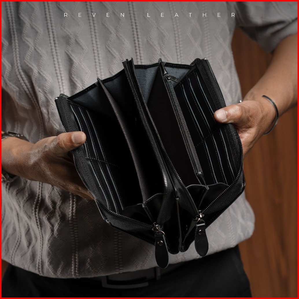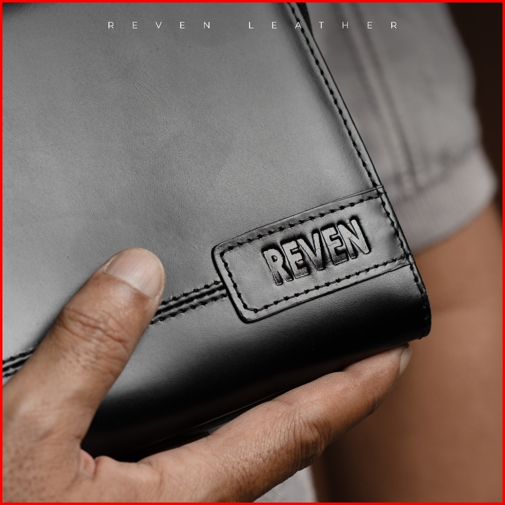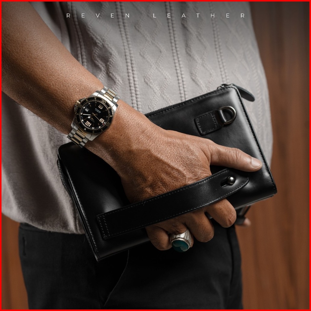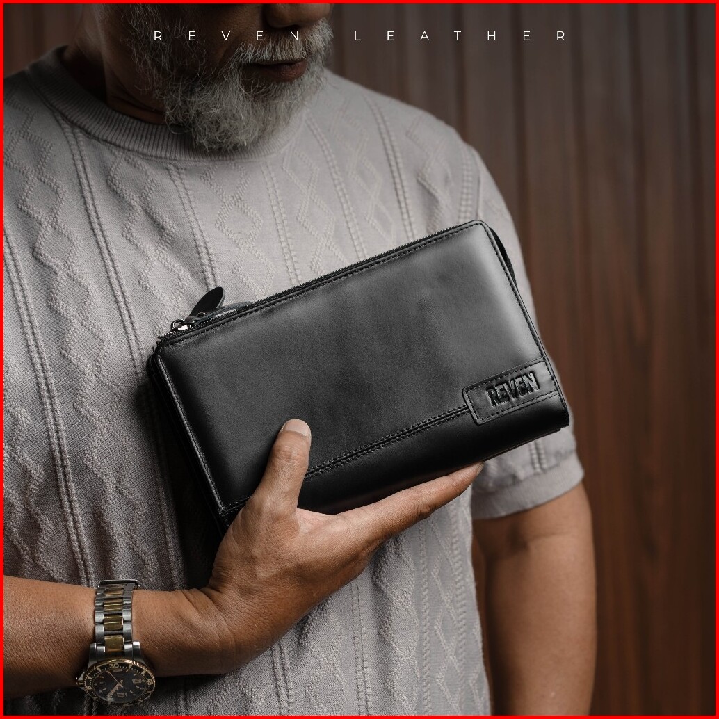 Reven Leather Diamante Bag - Tas Tangan Pria Kulit Sapi Asli Free Random Gift