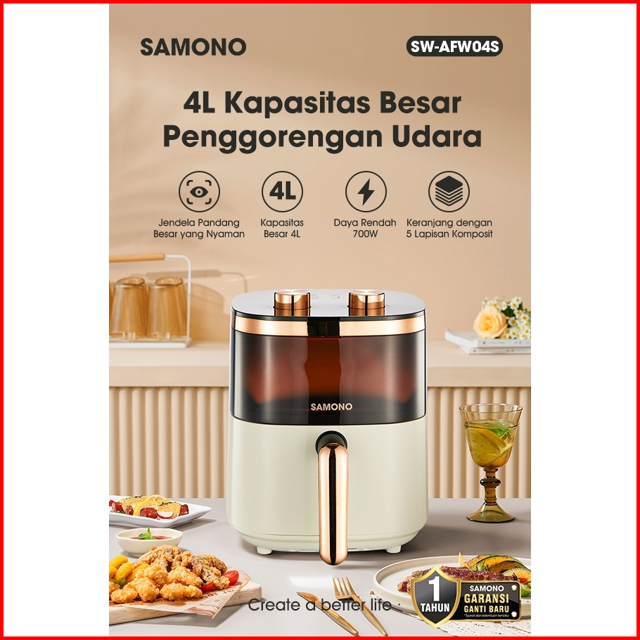Samono Air Fryer 4 Liter 700 Watt Sni 700w Mesin Menggoreng Tanpa Minyak Air Fryer Aesthetic Transparan Sw-afw04s - Gara