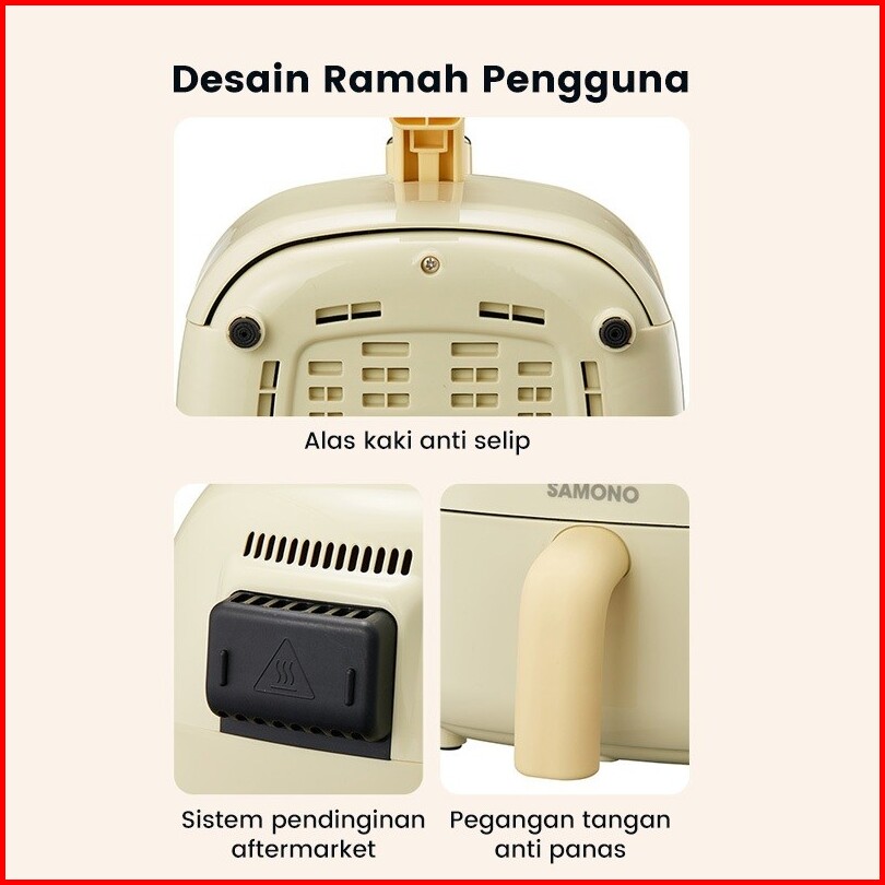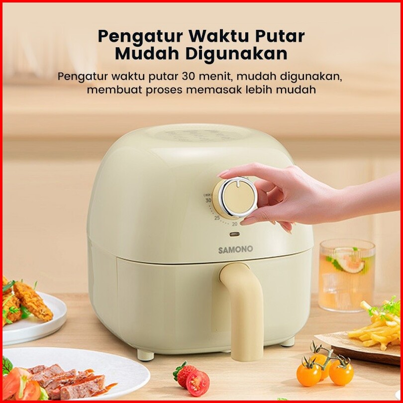 Samono Mini Air Fryer 2.4 Liter Low Watt Menggoreng Tanpa Minyak Lebih Sehat Timer Hingga 30 Menit Dengan Kontrol Mudah