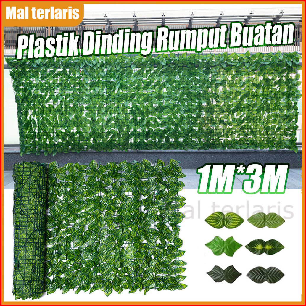 Plastik Dinding Rumput Buatan 1m 3m Daun Rambat Plastik Dekorasi Dinding Daun Rumput Sintetis Pagar Artificial Tanaman H