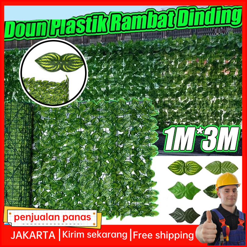 Daun Rambat Sintetis 1m 3m Plastik Dinding Rumput Buatan Daun Pagar Roll Artificial Hias Tanaman Hias Sintetis Daun Hias