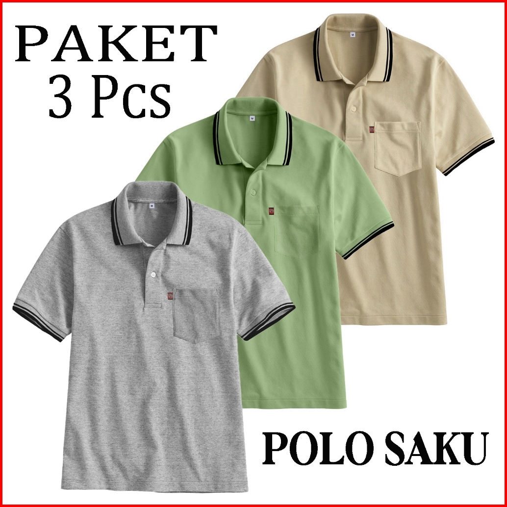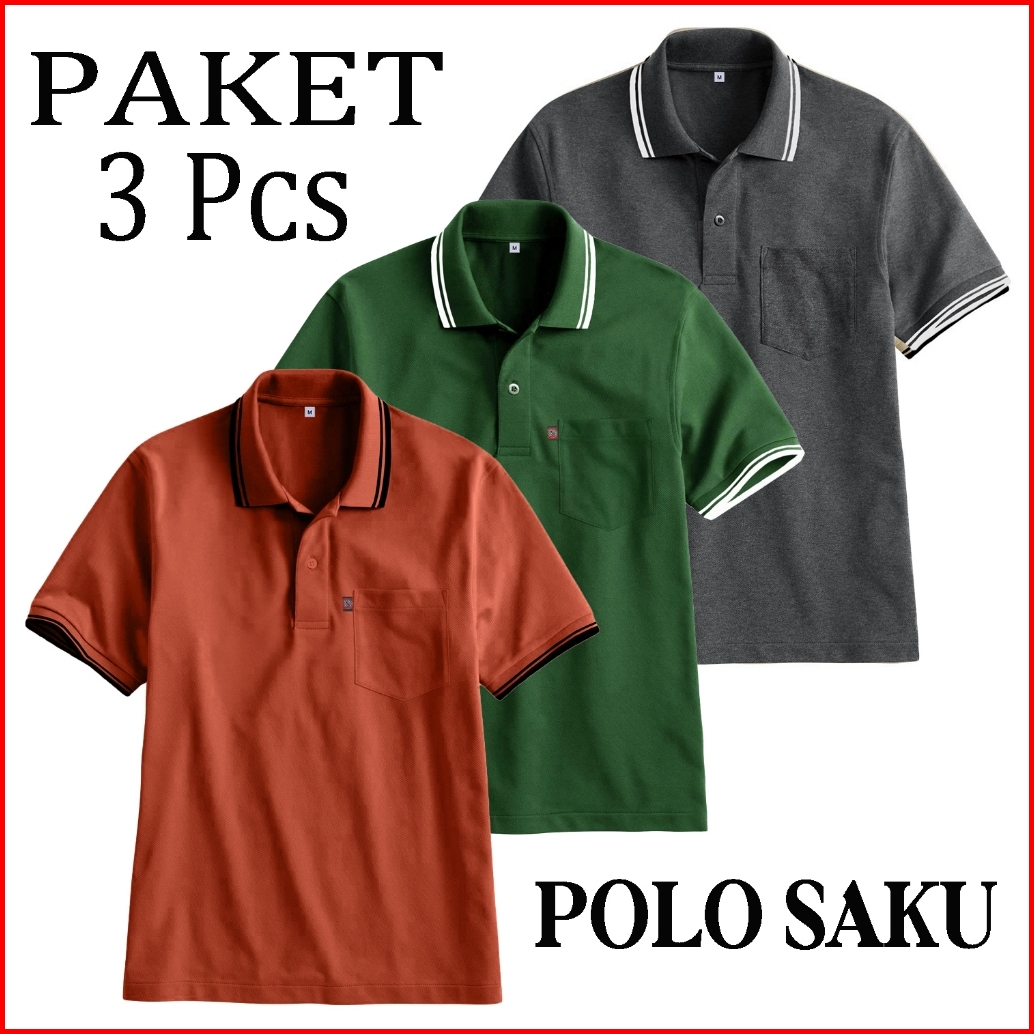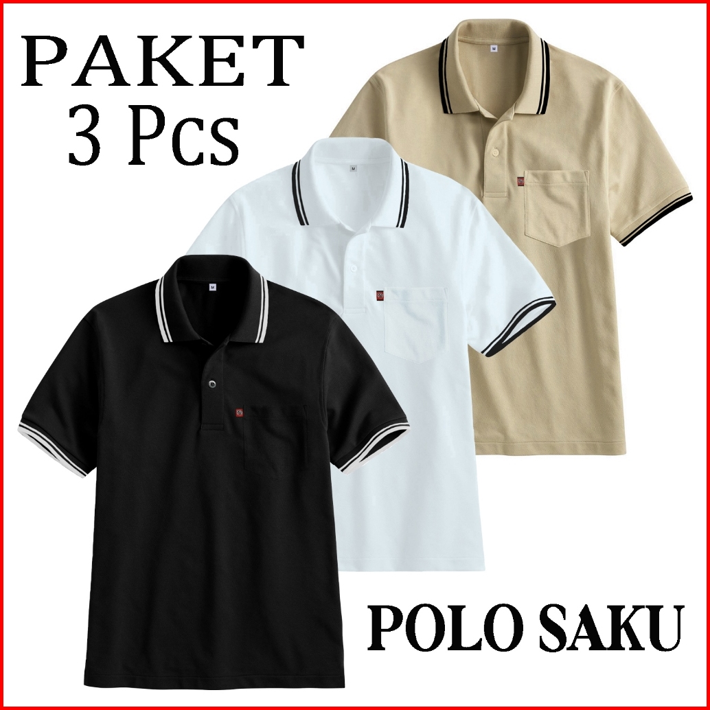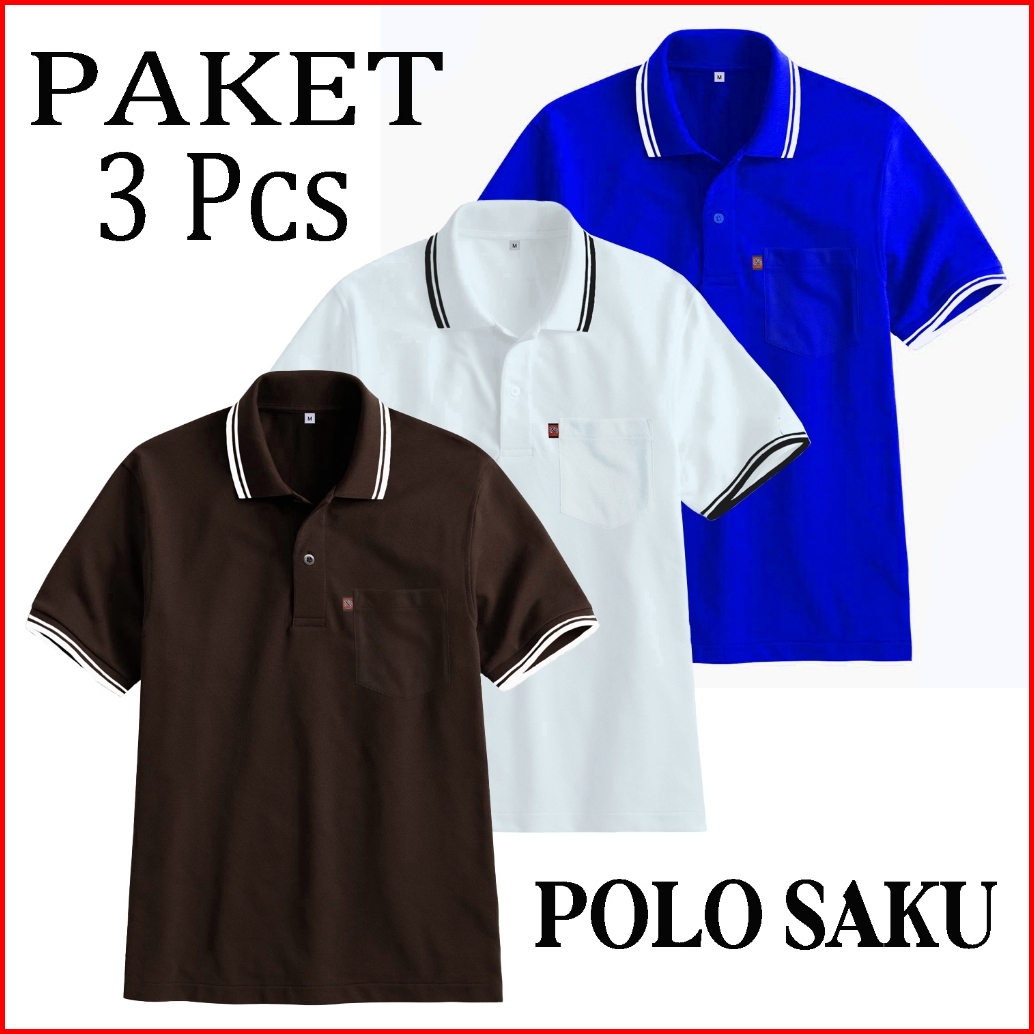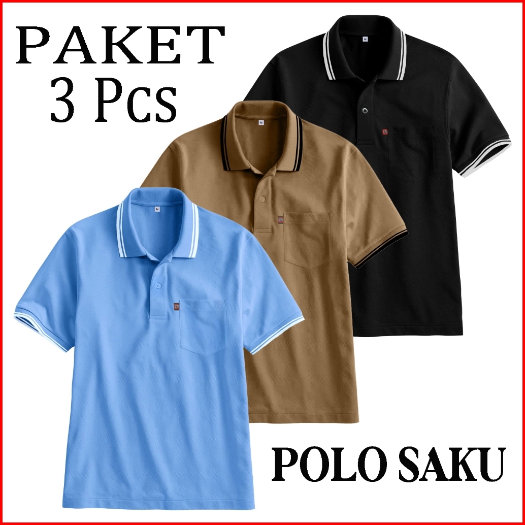 Kaospolos - Paket 3pcs Kaos Kerah Saku Kaos Seragam Polo Shirt Kaos Saku Kerah Pria