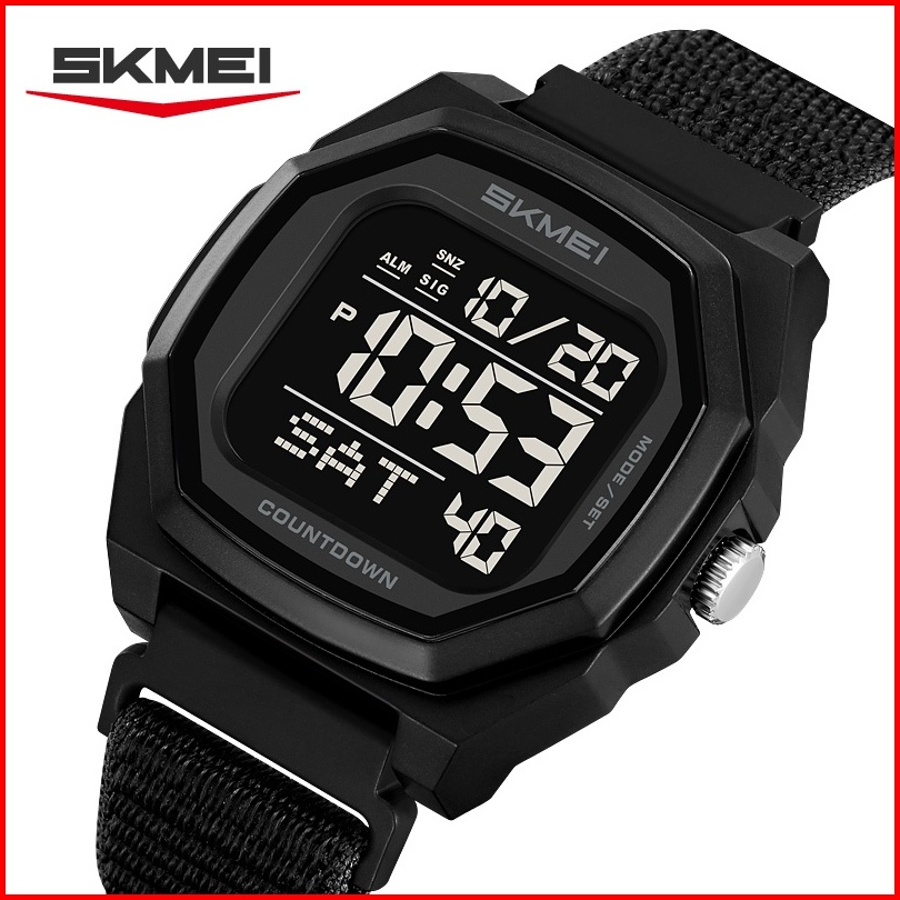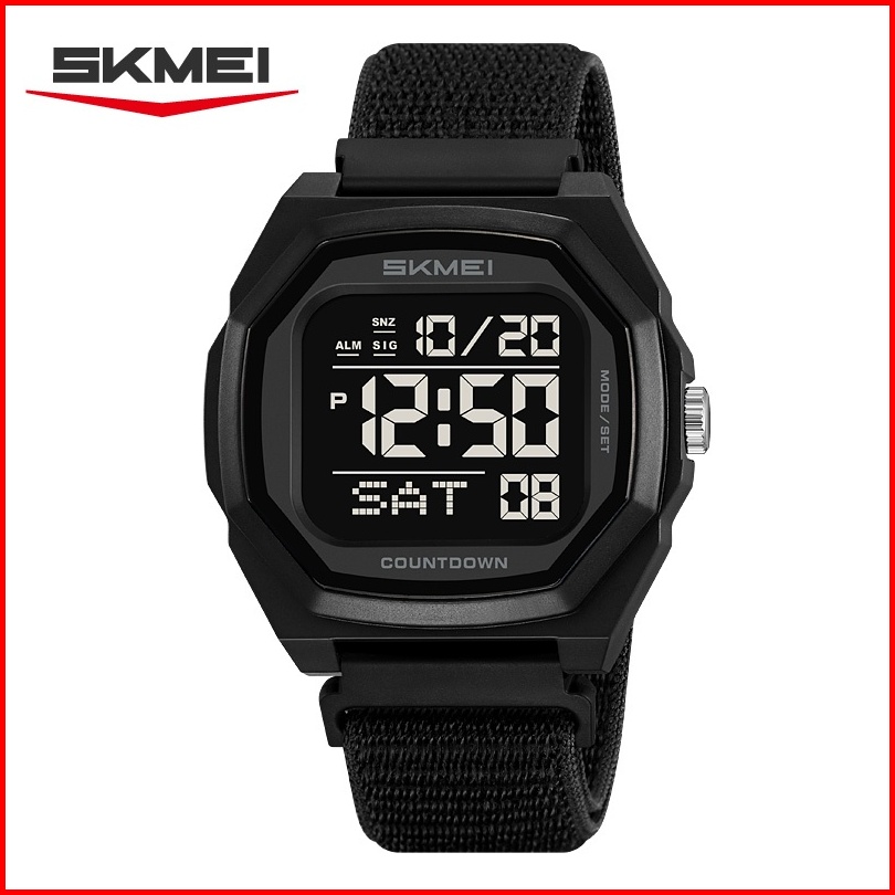 Jam Tangan Digital Skmei 2495 Black Nylon Water Resistant 30m