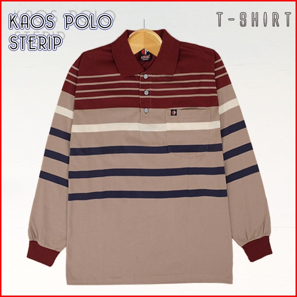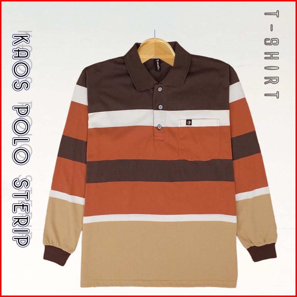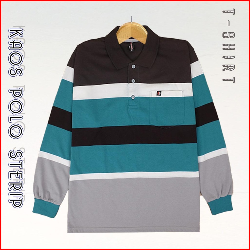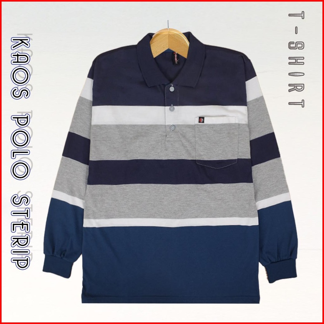 Kaospolos - Kaos Kerah Distro Salur Lengan Panjang Pria Kerah Polo Shirt Saku Stripe Kaos Pria