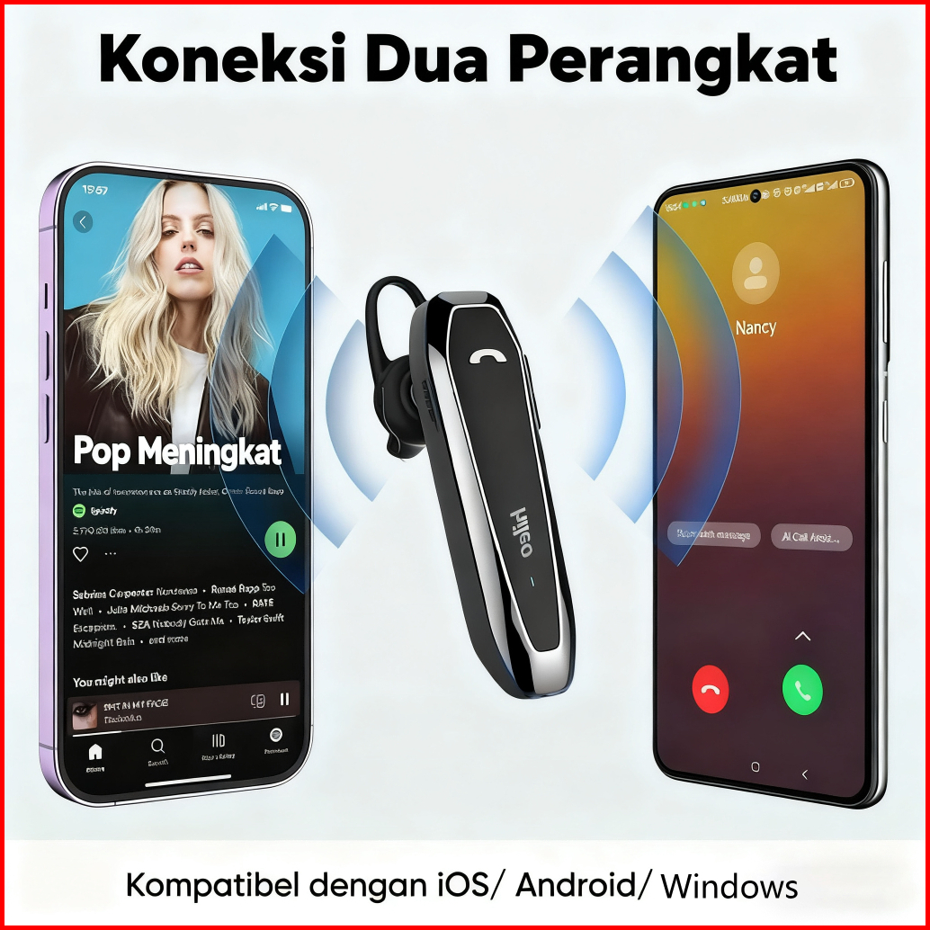Hileo Hi6 Headset Wireless Bluetooth V5.2 Telinga Tunggal Earphone Bisnis Earphone