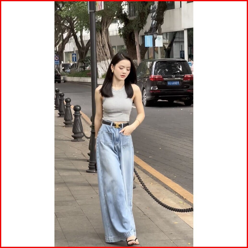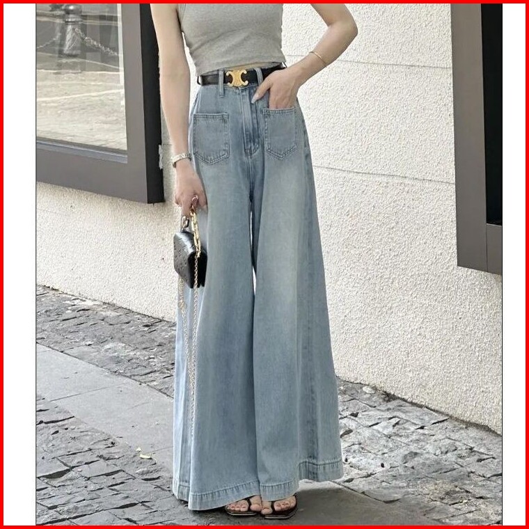 Jeans Pinggang Tinggi Kaki Lebar Wanita