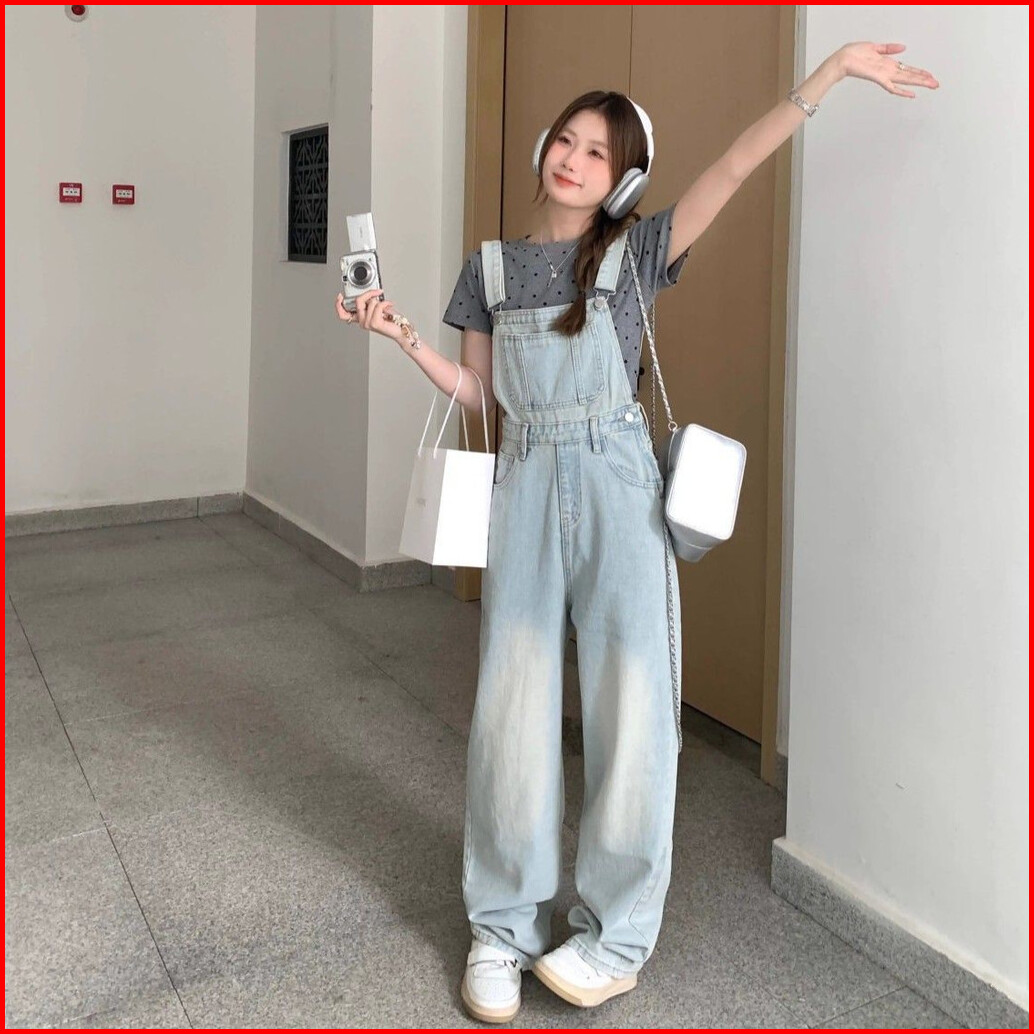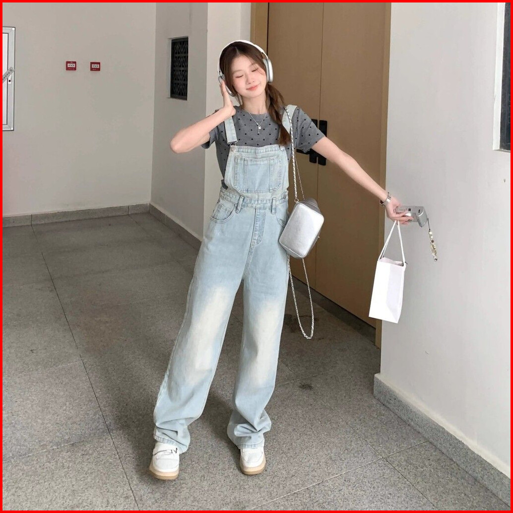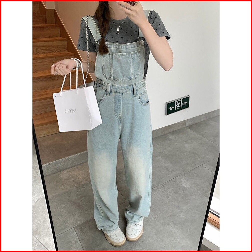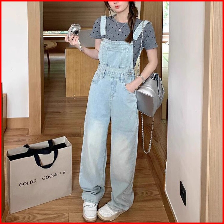 Overall Kaki Lebar Longgar Pinggang Tinggi Gaya Korea Wanita