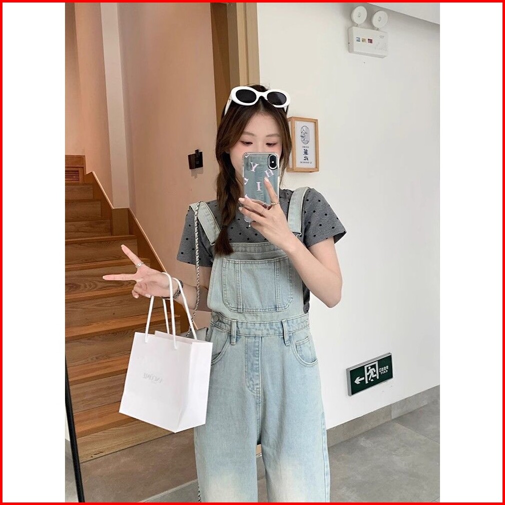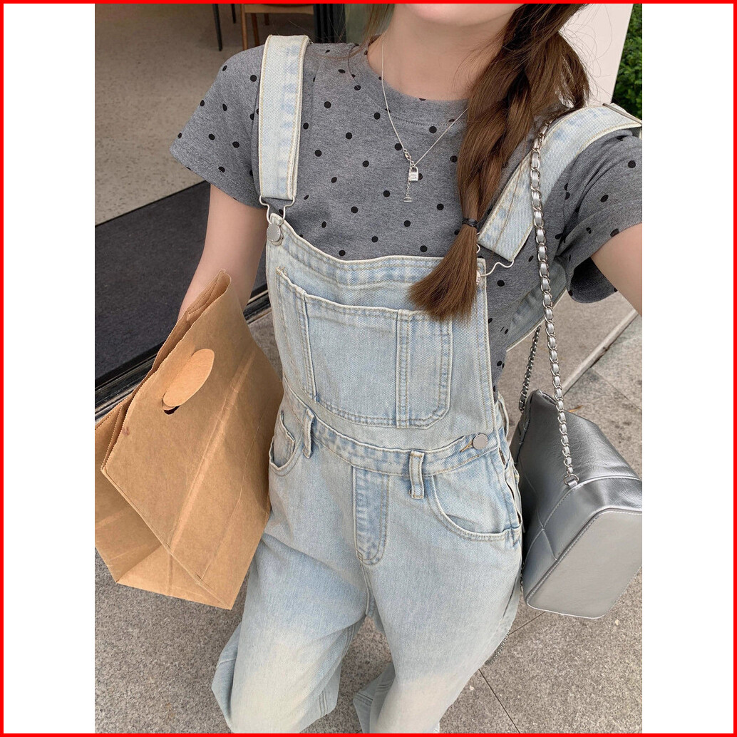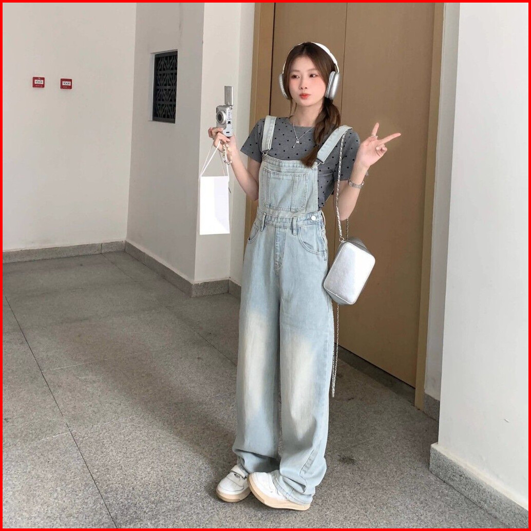 Overall Kaki Lebar Longgar Pinggang Tinggi Gaya Korea Wanita