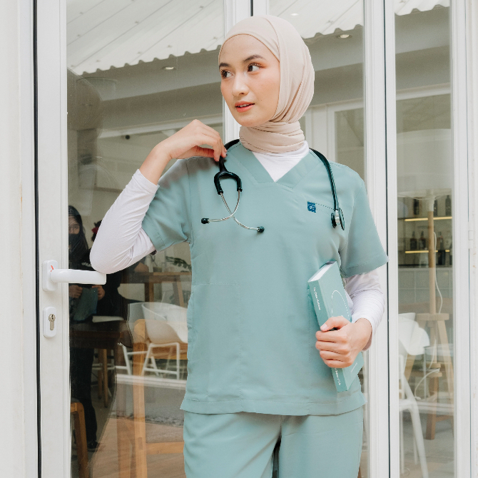 V NECK - FIRST LINE 01 Scrubs SS Lengan Pendek Baju Jaga Theatre Blues
