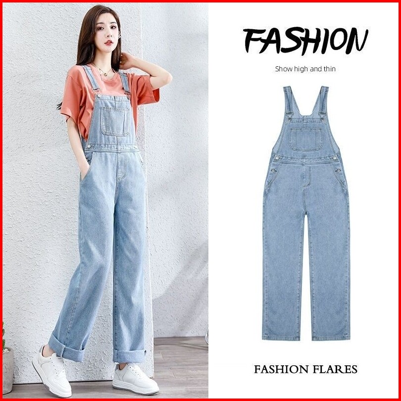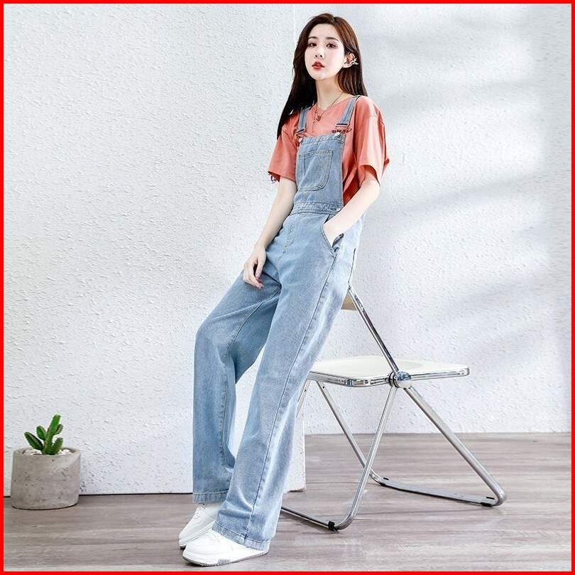 Overall Kaki Lebar Longgar Pinggang Tinggi Gaya Korea Wanita