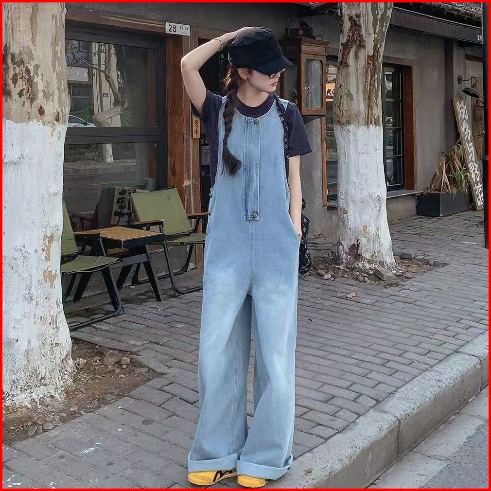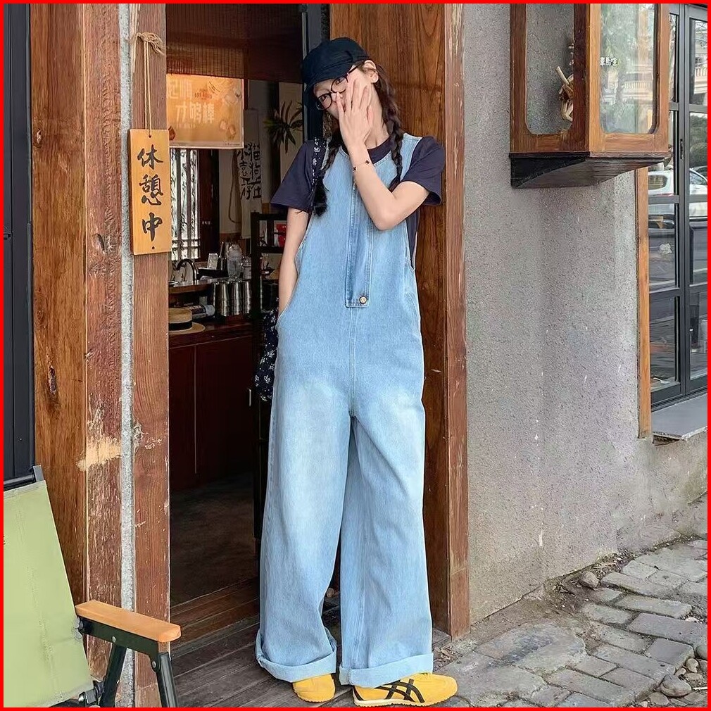 Celana Dungarees Wanita Gaya Korea - Desain Minimalis Bahan Denim Lembut