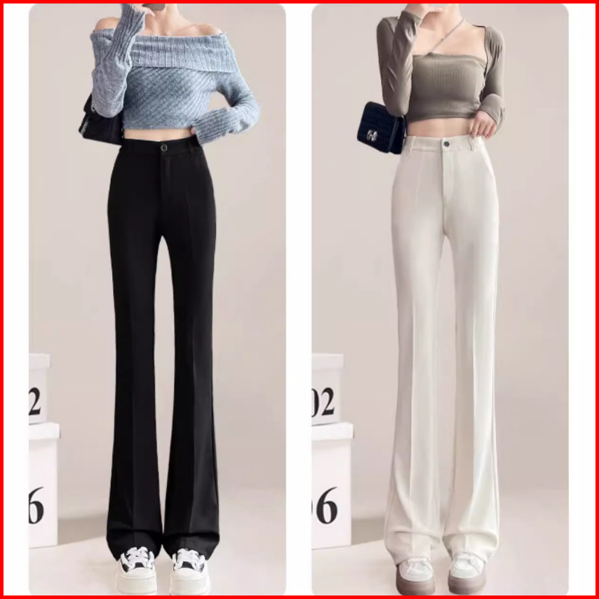 Alice Celana-highwaist Celana Kulot Hitam Wanita Celana Setelan Wanita Korea Celana Cutbray Krem
