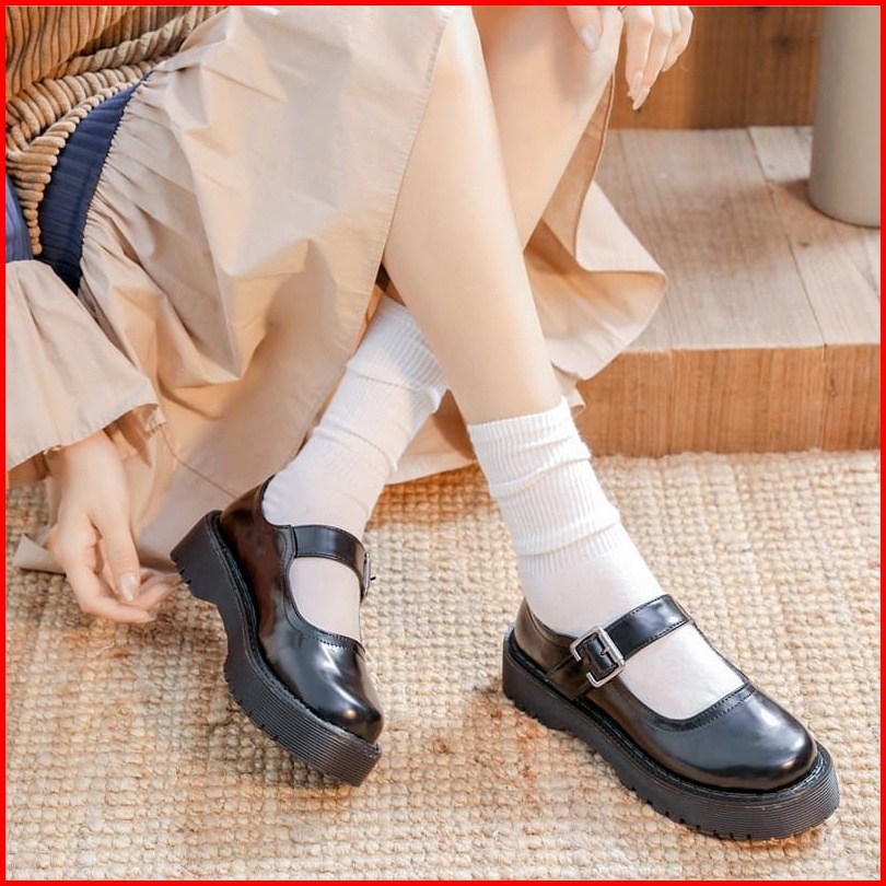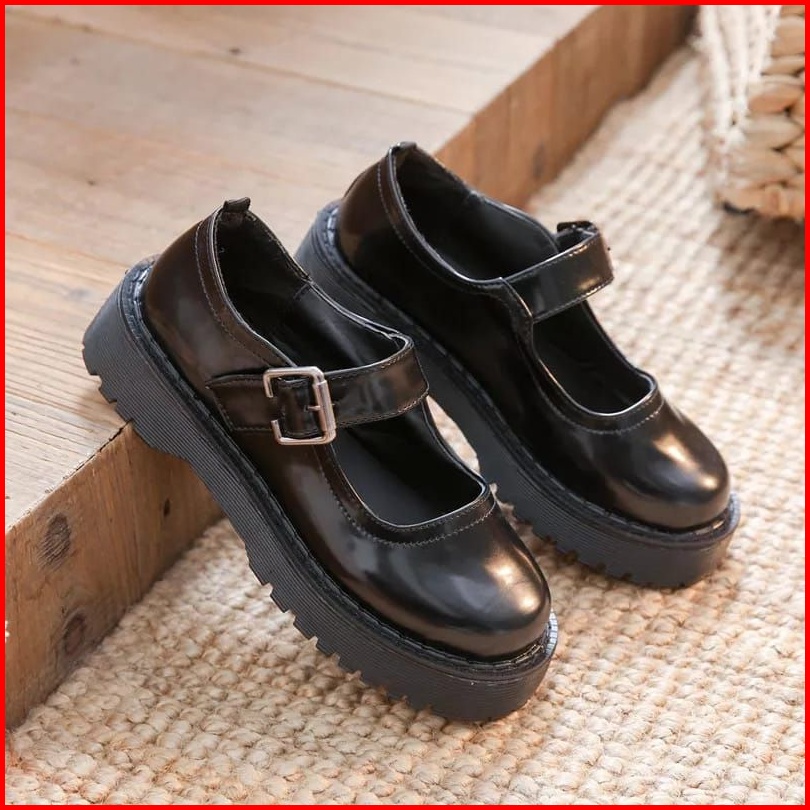 Sepatu Docmart Wanita Loafers Sekolah Remaja Dewasa Terbaru Style Korea Black Glosy Premium As 2455