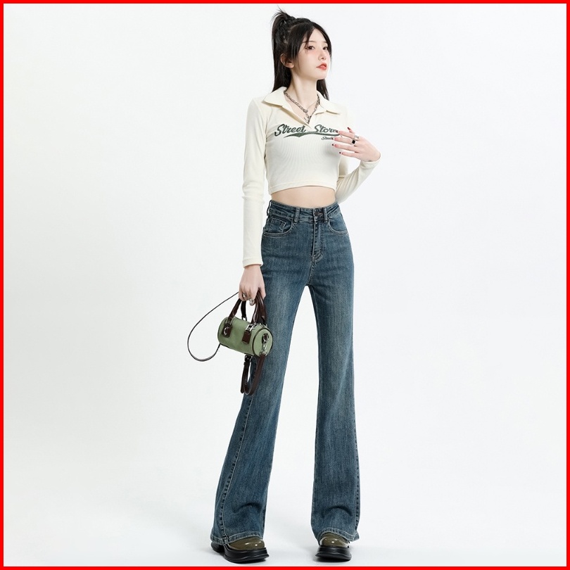 Alice Jeans- Highwaist Celana Cutbray Jeans Wanita Biru Retro Import