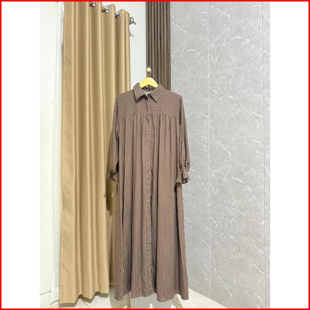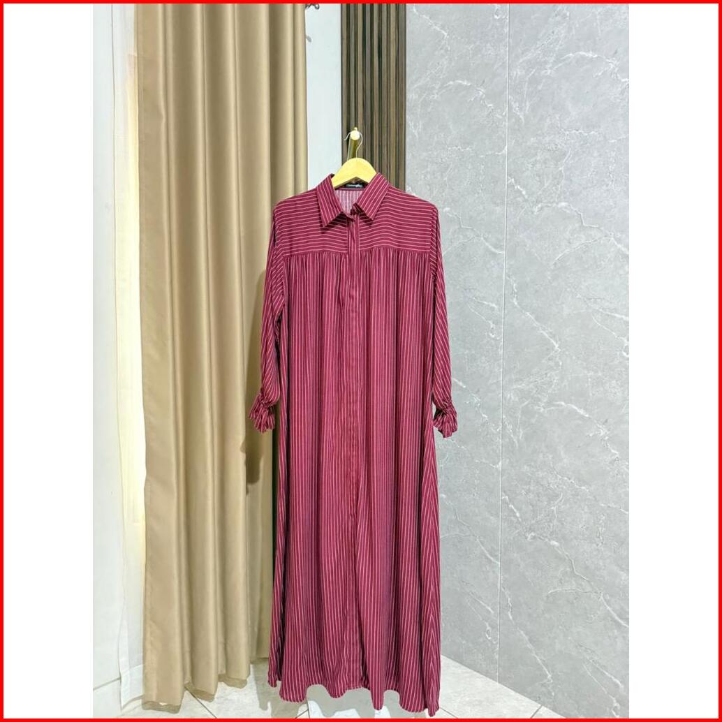 Jemma Dress Gamis Rayon Motif Salur Valencia Bella Mewah Elegant Busui