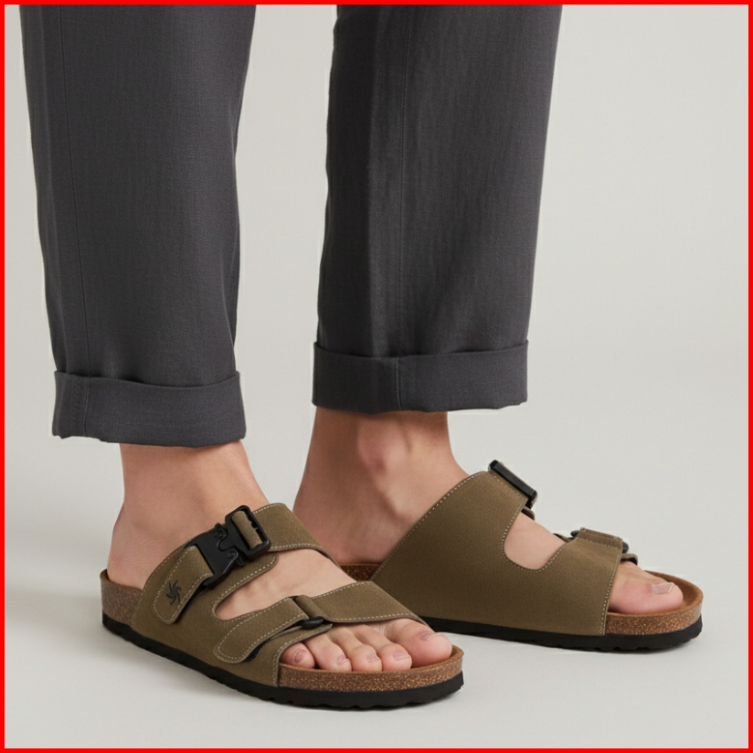 Julaybib Sawan - Moss Sendal Slippers Casual Original Olive Sandal Slip Pria Wanita Vegan Leather