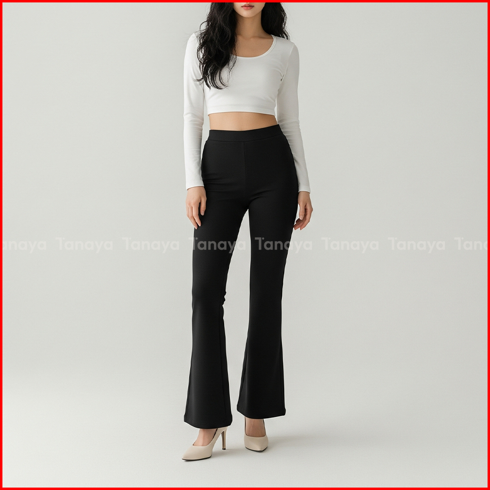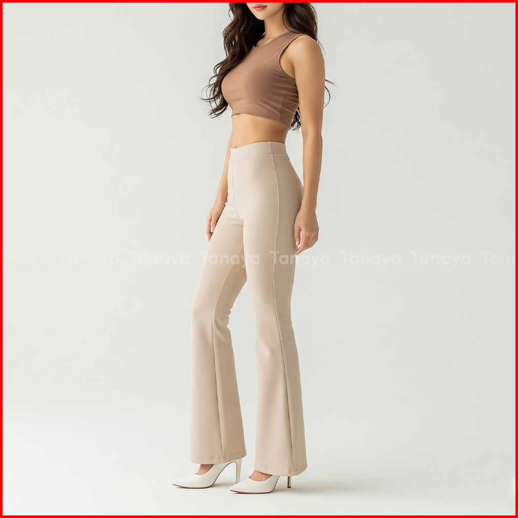 Flare Pants - Celana Panjang Wanita Bahan Scuba Premium Cutbray Highwaist Stretch Melar Kulot Loose