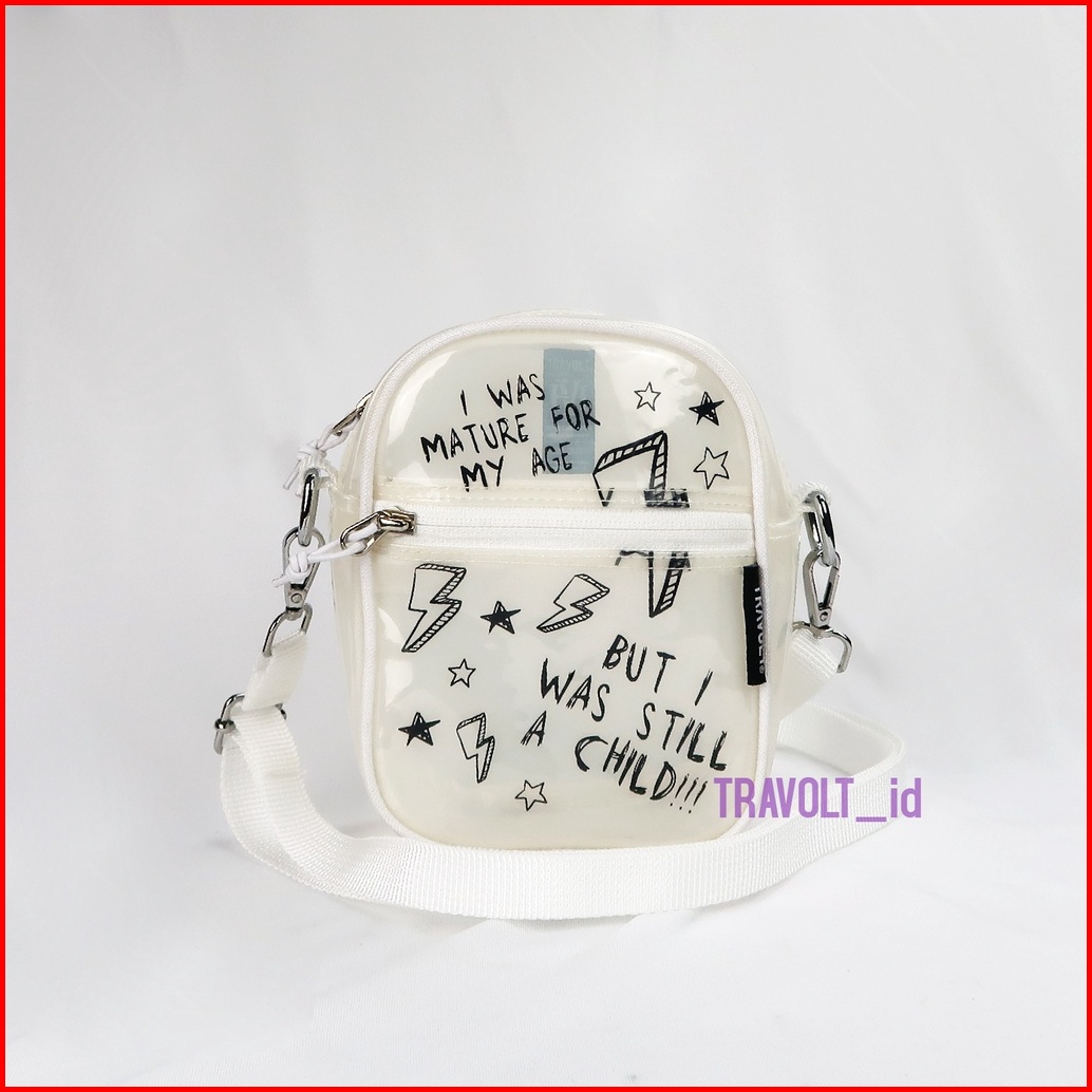 Mini Sling Bag - Travolt - Tas Transparan - Tas Selempang - Real - White - Putih