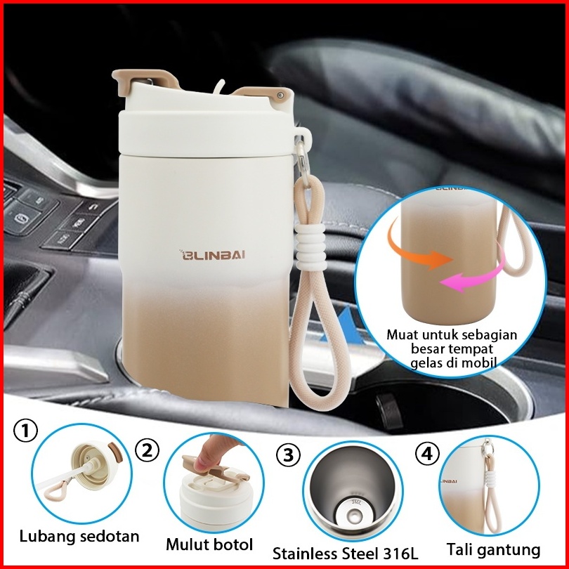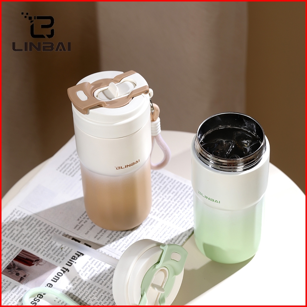 Linbai Flask 550ml Coffee Mug With Handle Rope Thermos Cup Vacuum With Lid Hot And Cold 316 Stainless Steel Tumbler