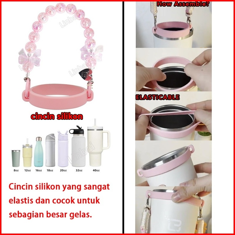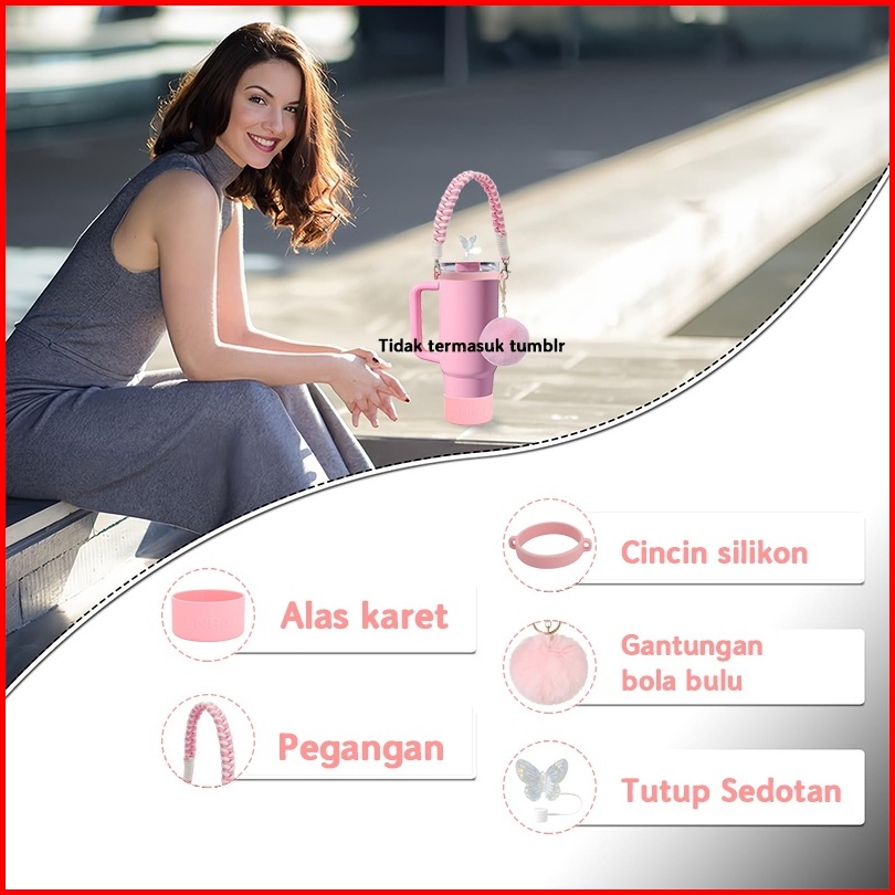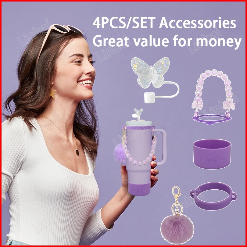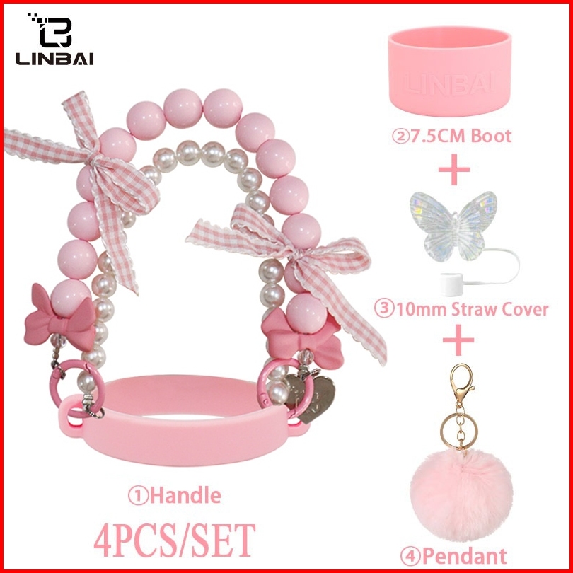 Linbai 4pcs Tumbler Accessories Set Not Including Tumbler Pink Bow Tie Straw Cover Handle Rope Boot
