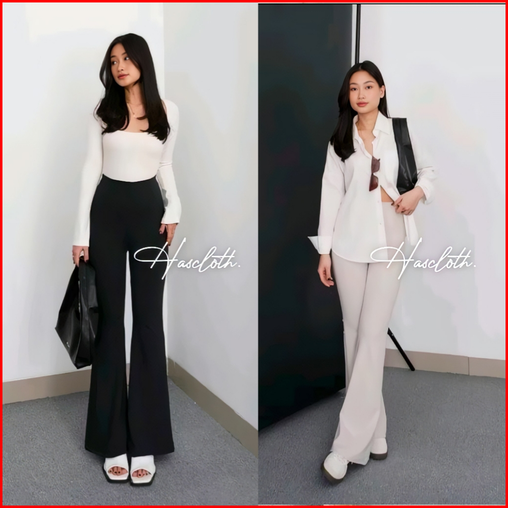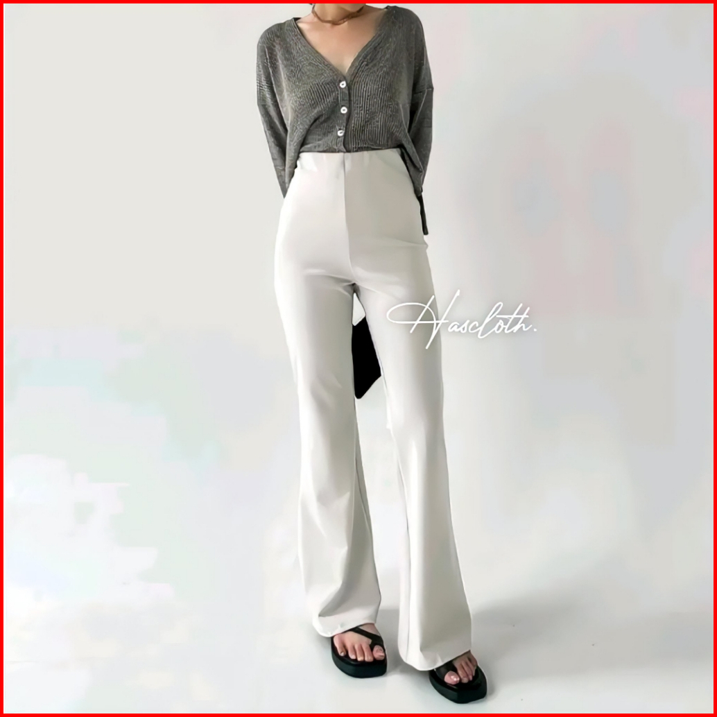 Celana Fit And Flare Pants Cutbray Scuba Pinggang Highwaist Bahan Stretch Melar Elastis Kulot Cutbray Scuba