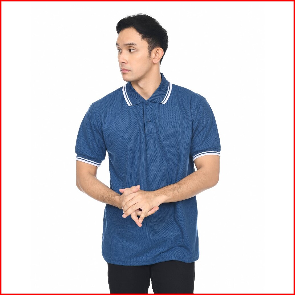 Kaos Polo Kerah List Warna Carolina Blue Kaos Berkerah List Polo Shirt