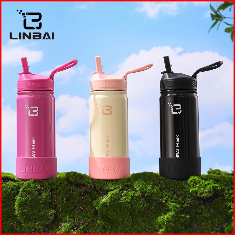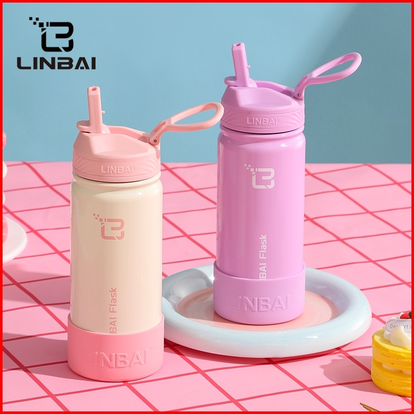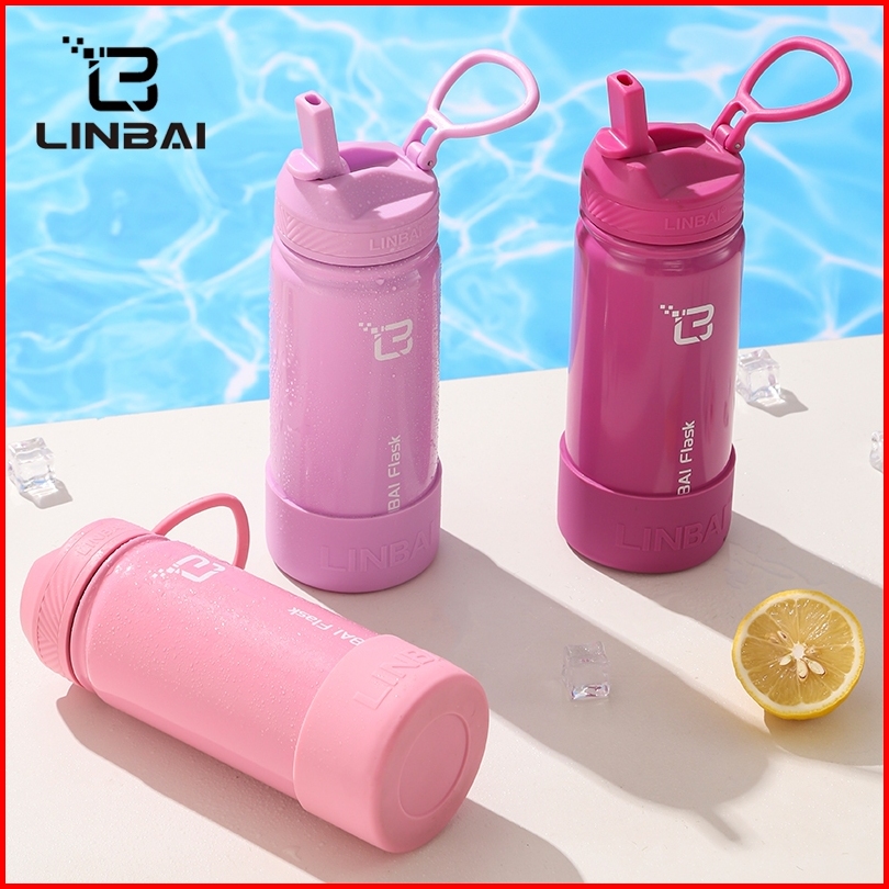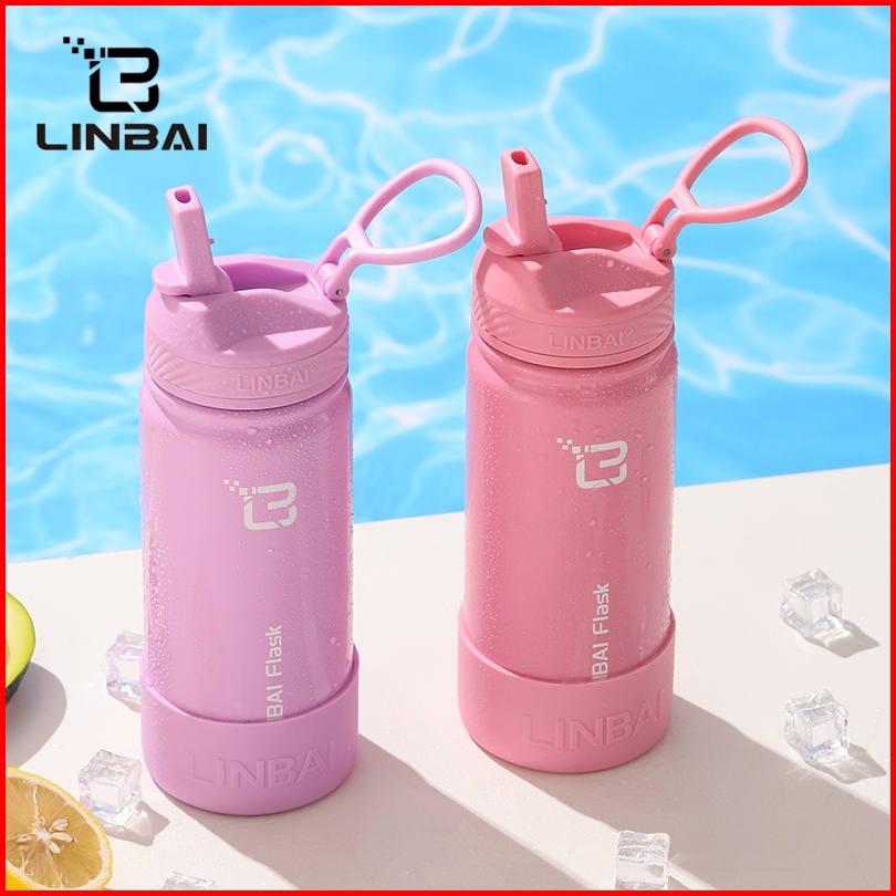 Linbai Flask16ozkids Tumbler With Straw And Silicon Boot Stainless Steel Tumbler Hot And Cold