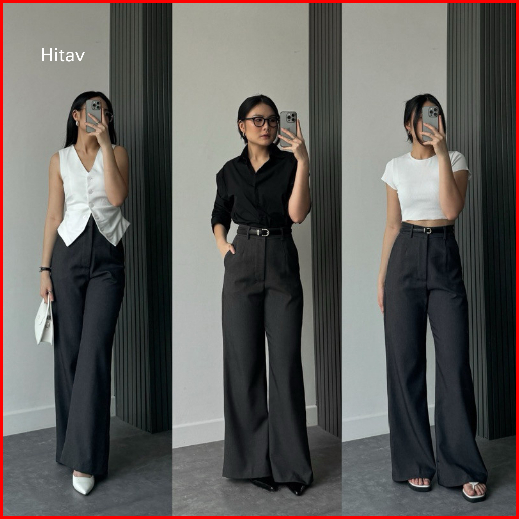 Hitav - Celana Panjang Wanita Cutbray - Celana Bahan Wanita Kerja Flared Pants Kekinian Terbaru
