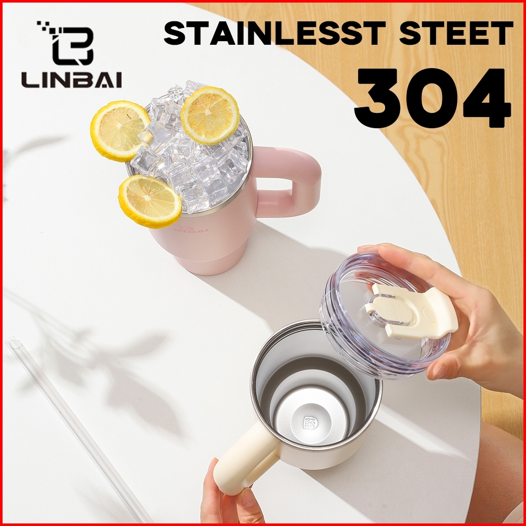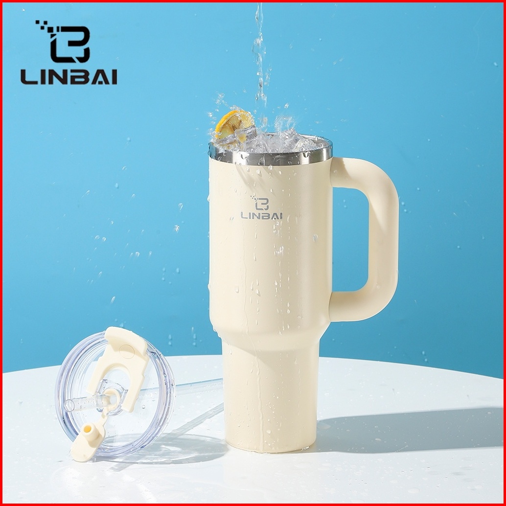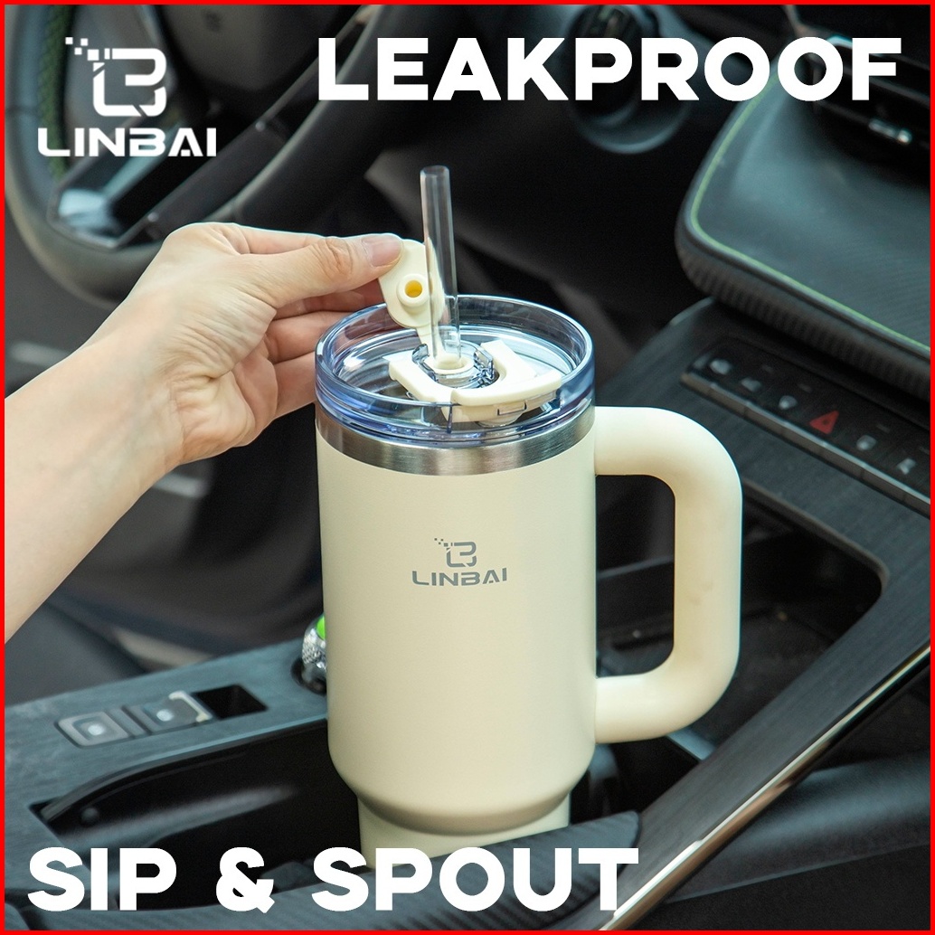 Linbai Flask 40oz Stainless Steel Insulated Tumbler With Straw Vacuum Double Wall Leakproof Water Bottle