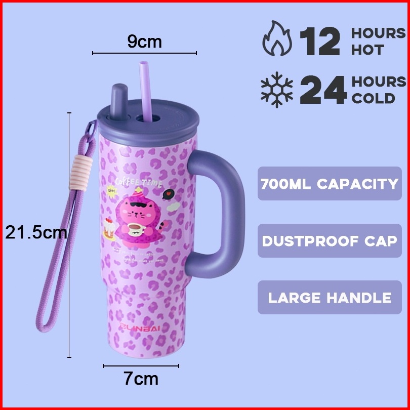 Linbai Flask 24oz Leopard Print Insulated Tumbler With Straw 304 Stainless Steel Water Bottle Double Wall Leakproof Vacu