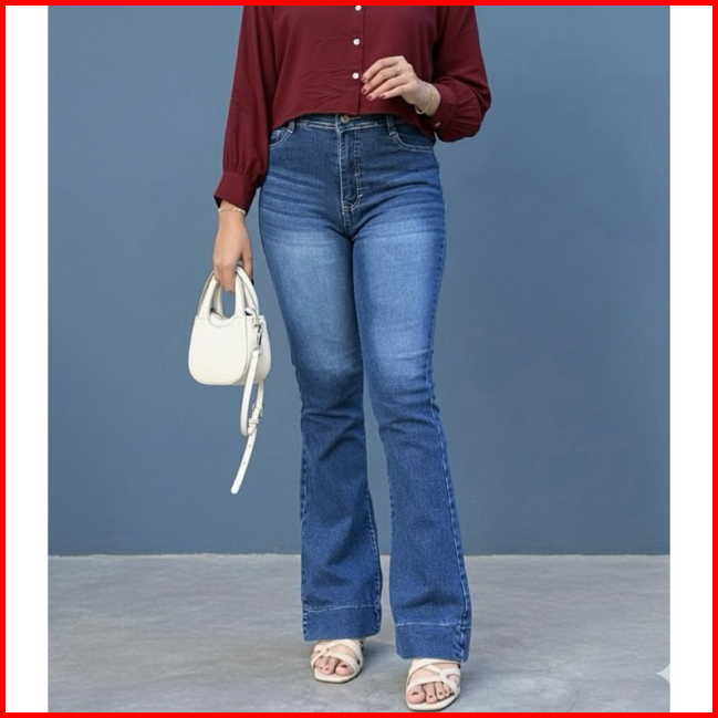Celana Cutbray Jeans Wanita Highwaist - Cutbray Jeans Stretch Highwaist Lipat Bawah