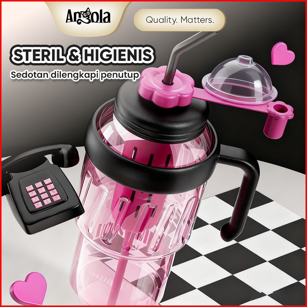 Angola Tumbler 2in1 1.3l Botol Minum Anti Bocor W09 Botol Dengan Sedotan Higienis Saringan Teh