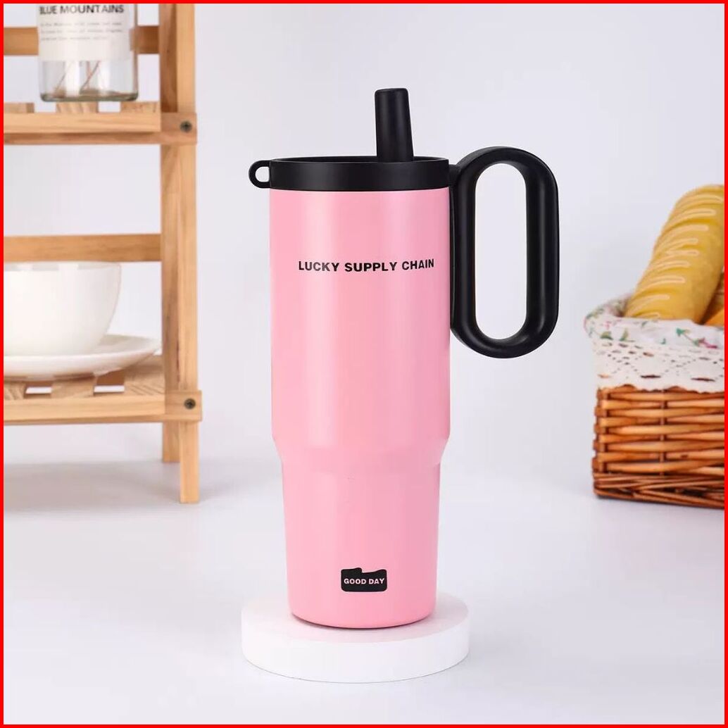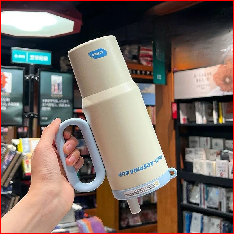 Tumblr Termos Stainless Gagang 750ml Dengan Sedotan Infused Anti Bocor Dan Tahan Panas Dingin