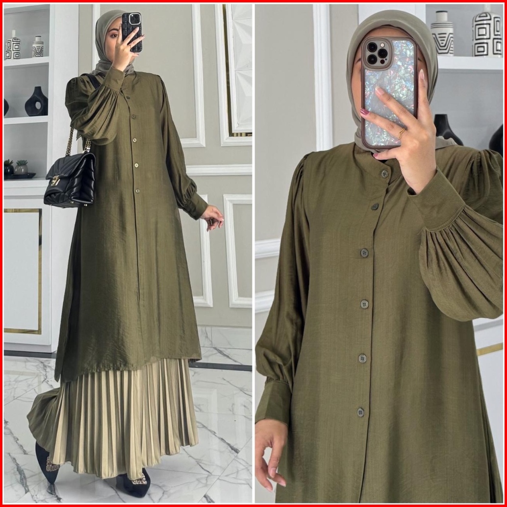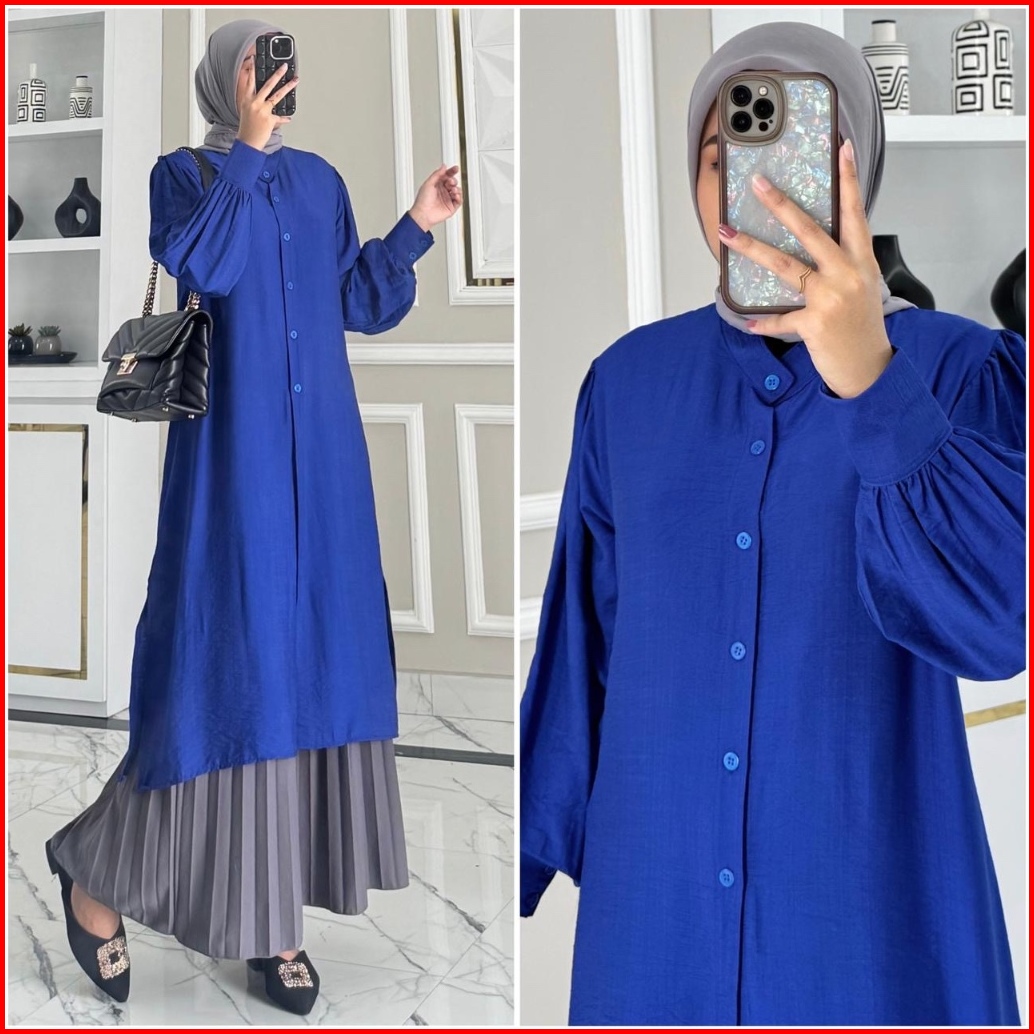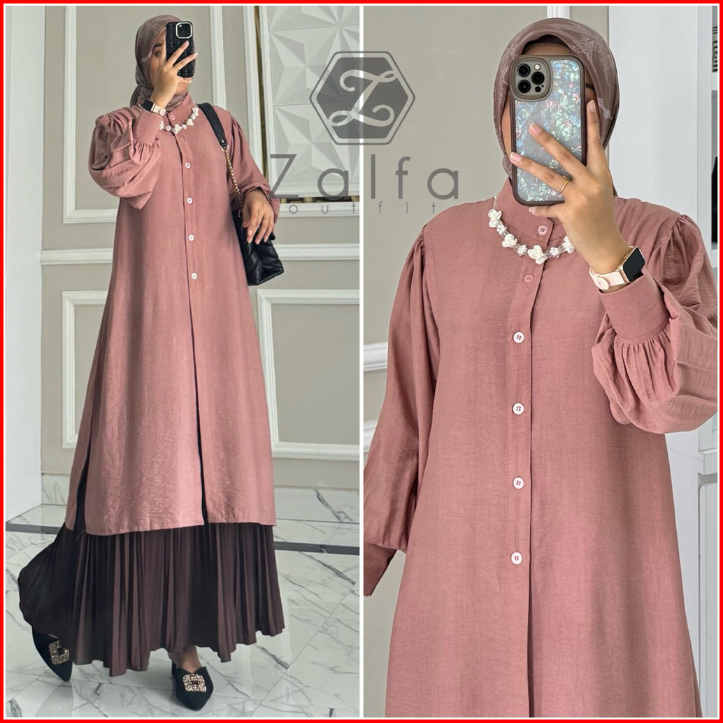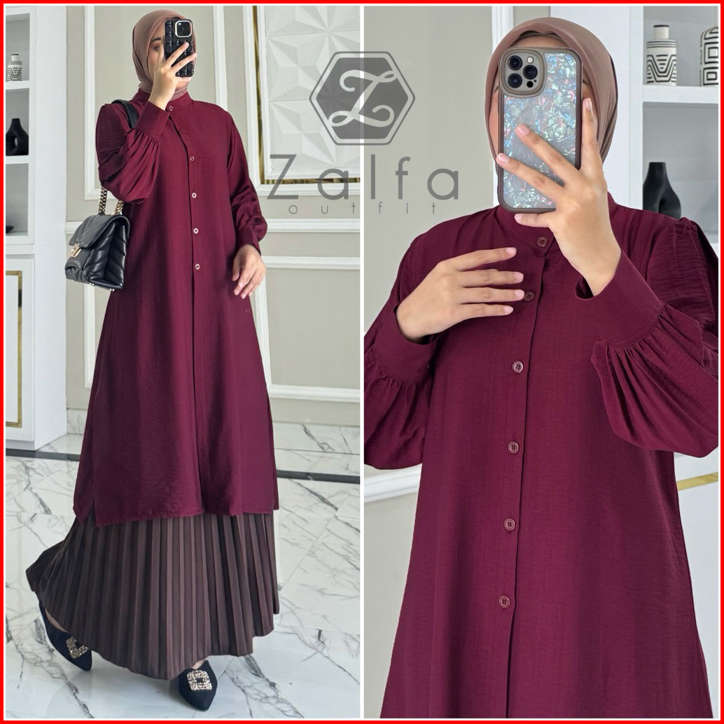 Lizza Tunik By Zalfa Outfit Tunik Wanita Polos Polo Linen Premium