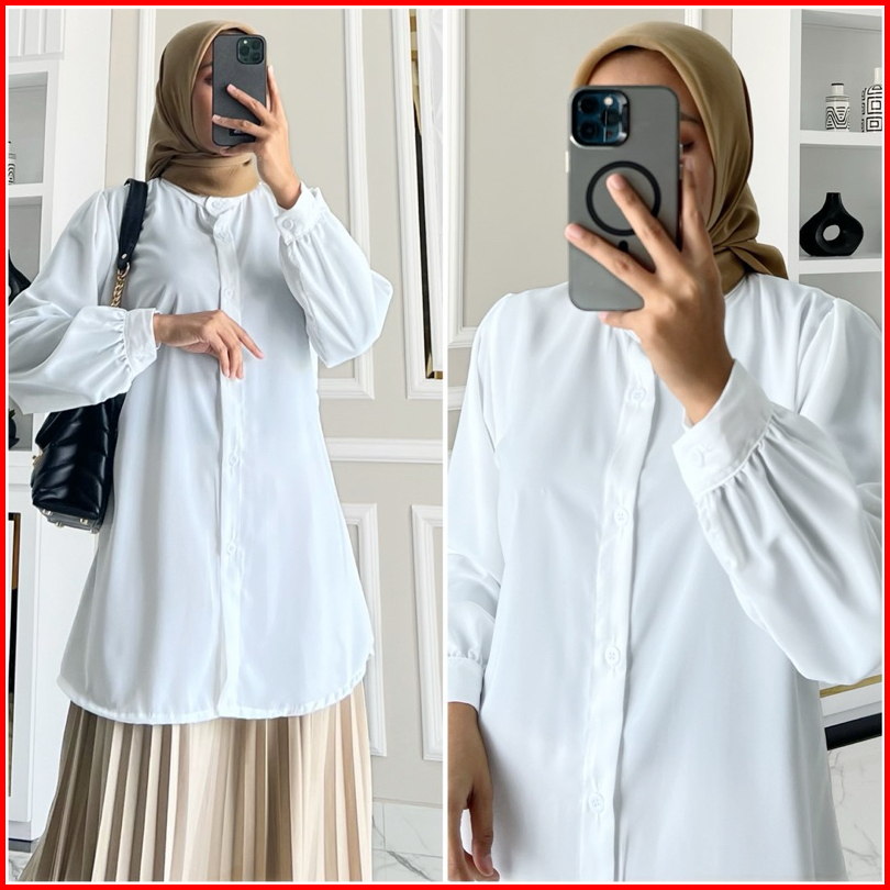 Almira Blouse By Zalfa Outfit Baju Atasan Wanita Muslim Blouse Basic Polos Wolfis Premium Lengan Panjang Manset