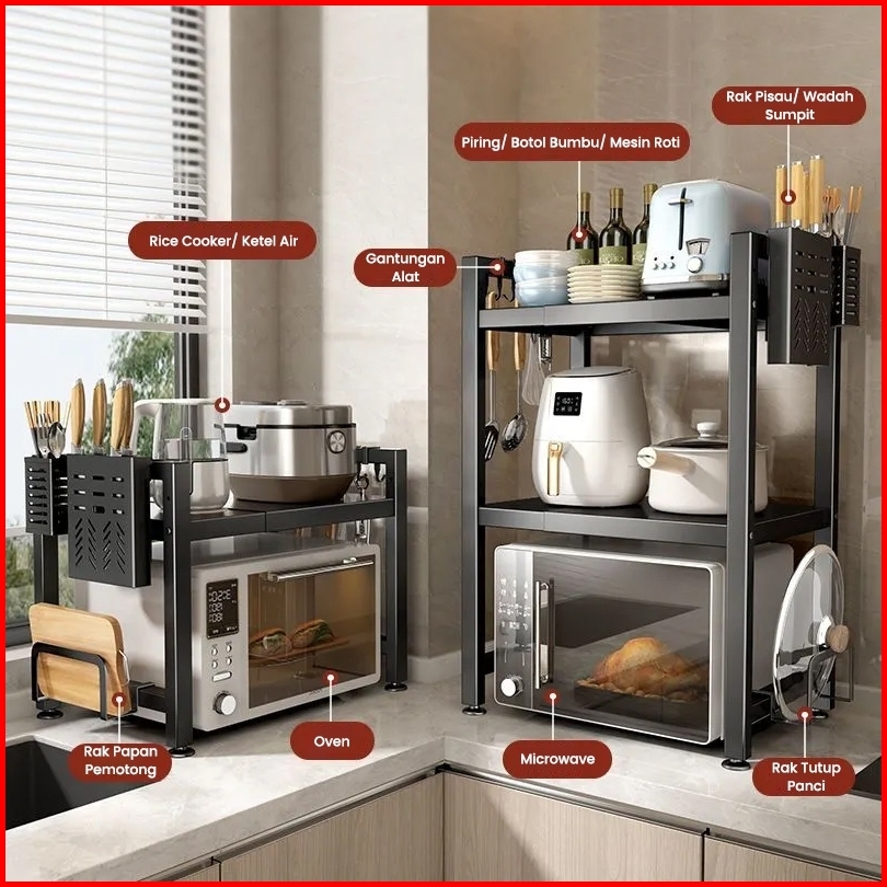 Rak Microwave Oven Rak Bumbu Dapur Rak Penyimpanan Serbaguna Portable Rak Panci Rak Rumah Tangga Dapat Diregangkan