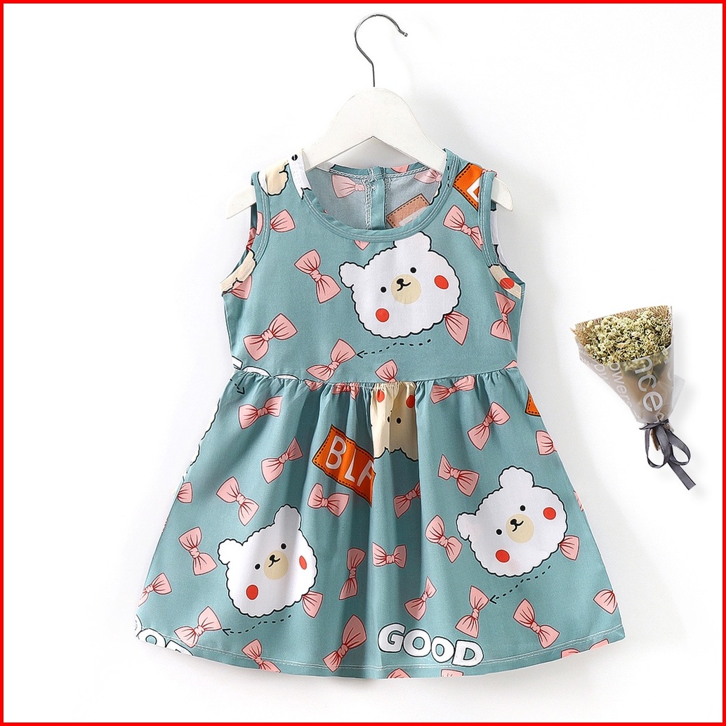 0-4 Tahun Dress Bayi Anak Kecil Perempuan Korean Style Retro A Line Cewek Bunga Tanpa Lengan Gaun Terusan Santai Perempu