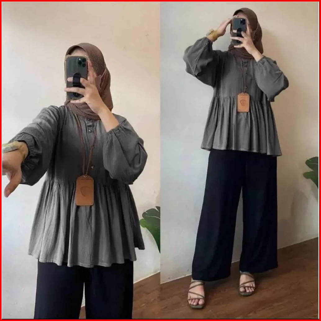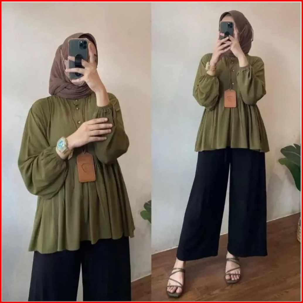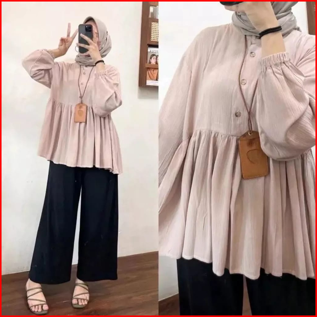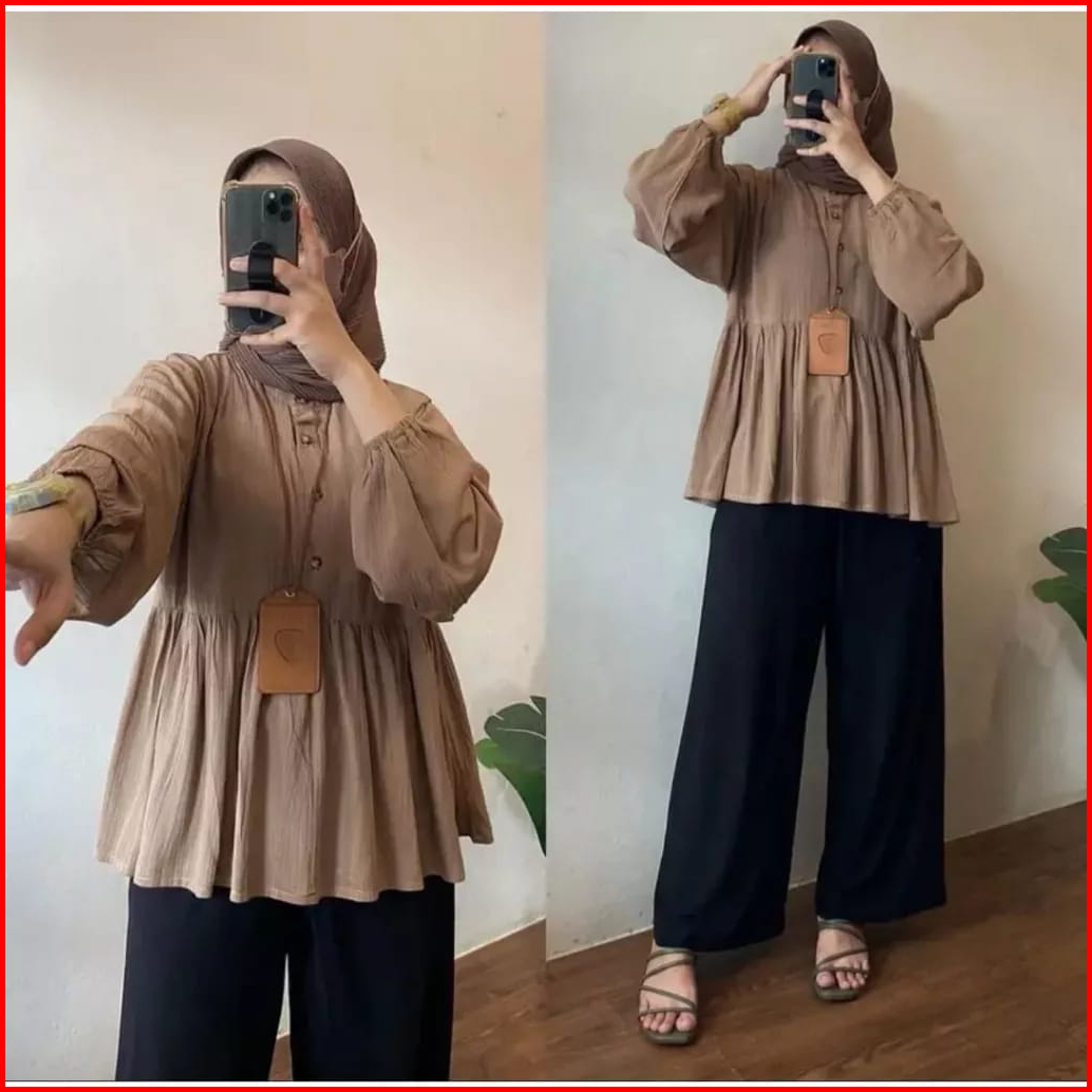 Ariani Blouse Rayon Crinkle Premium Kemeja Blouse Basic Wanita Atasan Wanita Busui Friendly